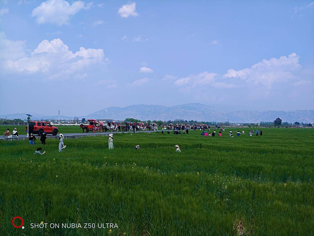 拍拍游客手里的气球,拍拍这片绿油油的麦子。拍麦子的时候我看不清屏幕的,光线太强了,我只能打开努比亚Z50 Ultra的专业模式,使用“峰值对焦”辅助功能进行拍摄对焦,焦点在哪里,界面的红色区域就越红。