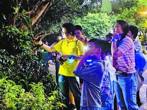 7月8日晚6点半,厦门市园林植物园科普馆内,来自20个家庭、约40人的亲子团成员,专心听着夜观讲座。接着,20个家庭被分成四组,沿着科普馆——蔷薇园、科普馆——奇趣园两条路线展开观察。