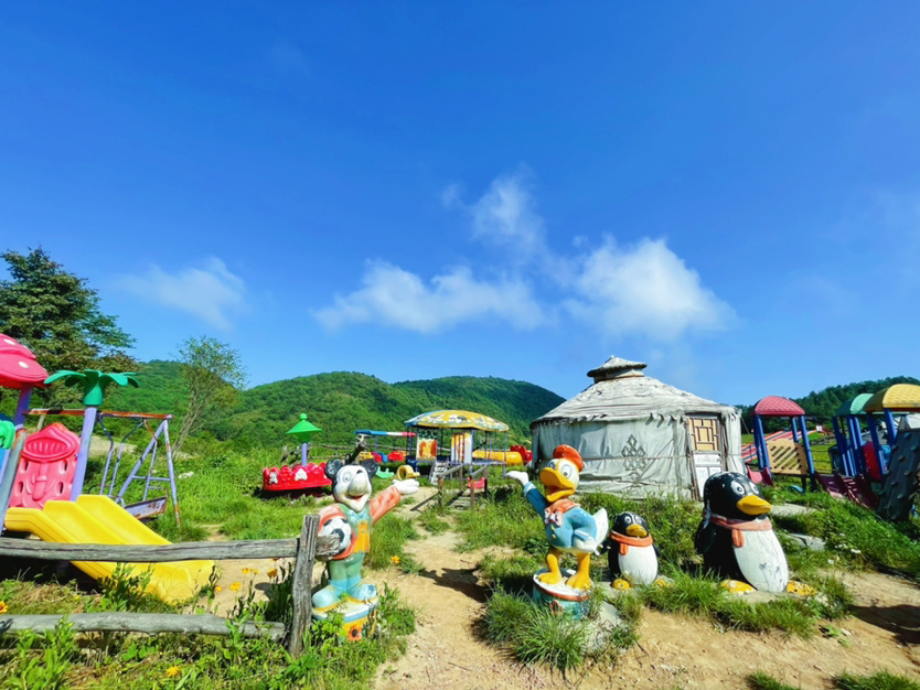 赏景之余,景区还可以体验各种游乐设施,拓展营地、彩虹滑道、蹦蹦床、户外茶歇、霍比特小屋等。