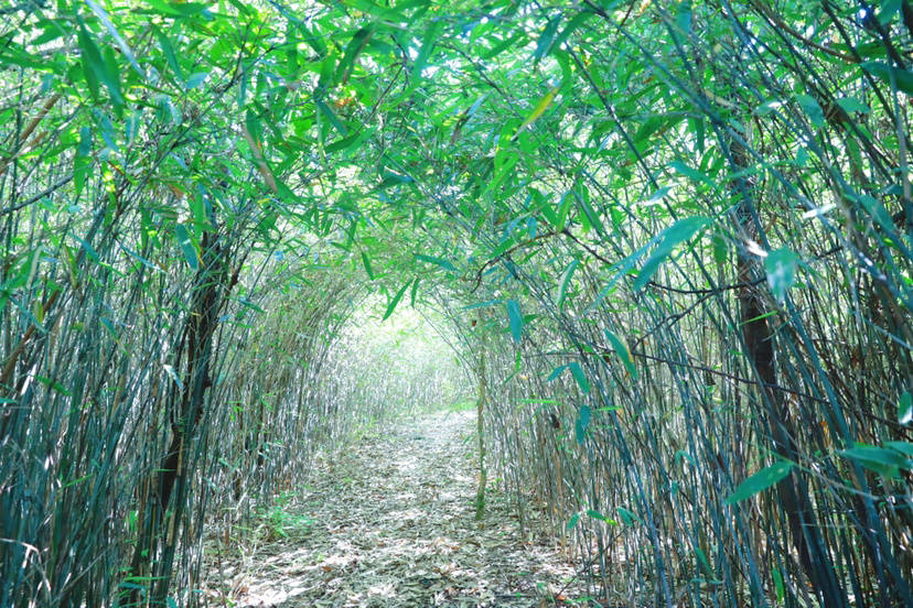 在草坝景区内有一处亚洲最大的原始竹林,相比城市中的嘈杂,蝉鸣与鸟啼显得出竹林的清幽和宁静。穿行于密林间,呼吸着清新的空气,竹海林荫曲径通幽。