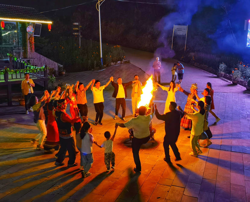 夜幕降临,草坝景区点燃了篝火,当音乐响起,大家围着篝火载歌载舞,彼此从陌生到熟悉,从拘谨到放松,镇巴民歌唱起来,欢快的舞蹈跳起来,不论男女老少都加入到人群中尽情舞蹈,沉浸在欢歌笑语之中。