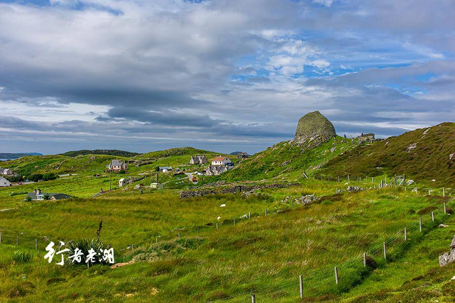 敦卡洛韦古堡(Dun Carloway Broch),矗立在卡洛韦山坡岩石上,与周围鲜绿的荒草融为一体。古堡已失去了塔顶,只剩下半截,光秃秃的,一眼看去内心有些许失落。但苏格兰的向导强调说,这个不起眼的圆形石塔,可是2300多年前的古迹。