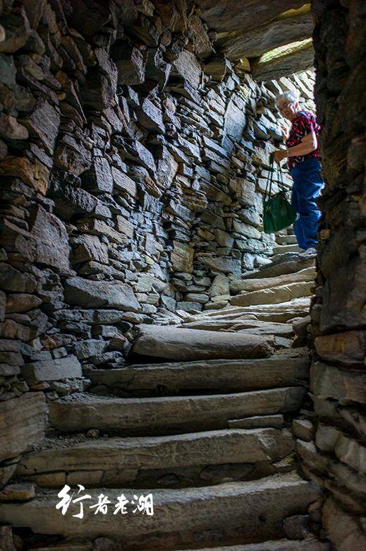 双壁间的夹层间的支撑石块也是一个石头阶梯,可以走到上层,夹层空间最宽可容人、储物,甚至养羊,更重要的是保证石塔底部墙壁有稳固的支撑。