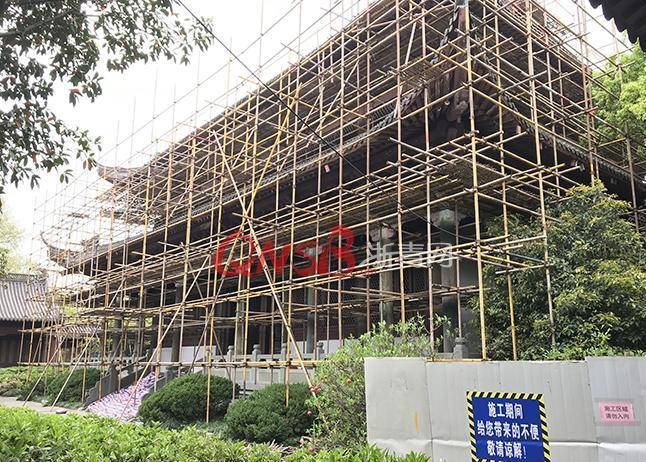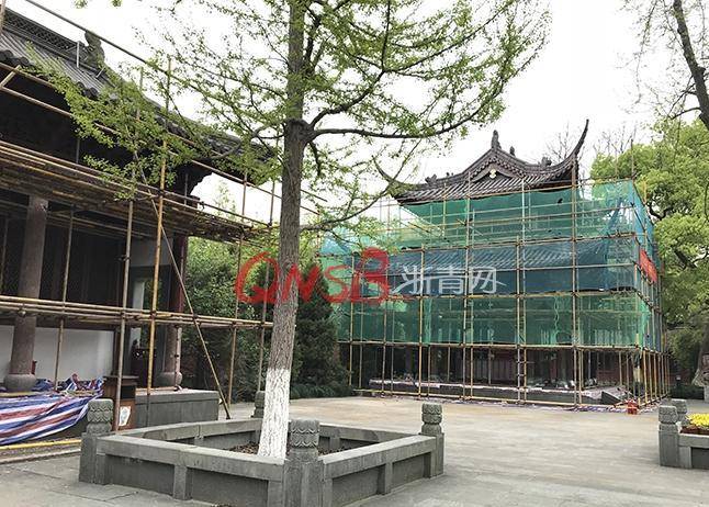 钱王祠11幢待修建筑都已经进入脚手架搭建中