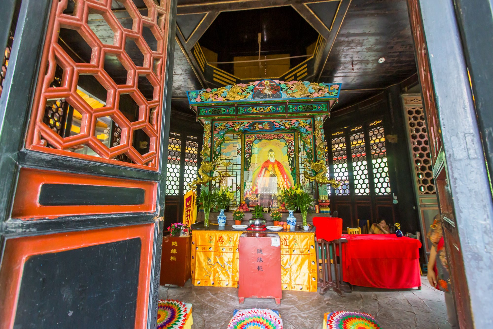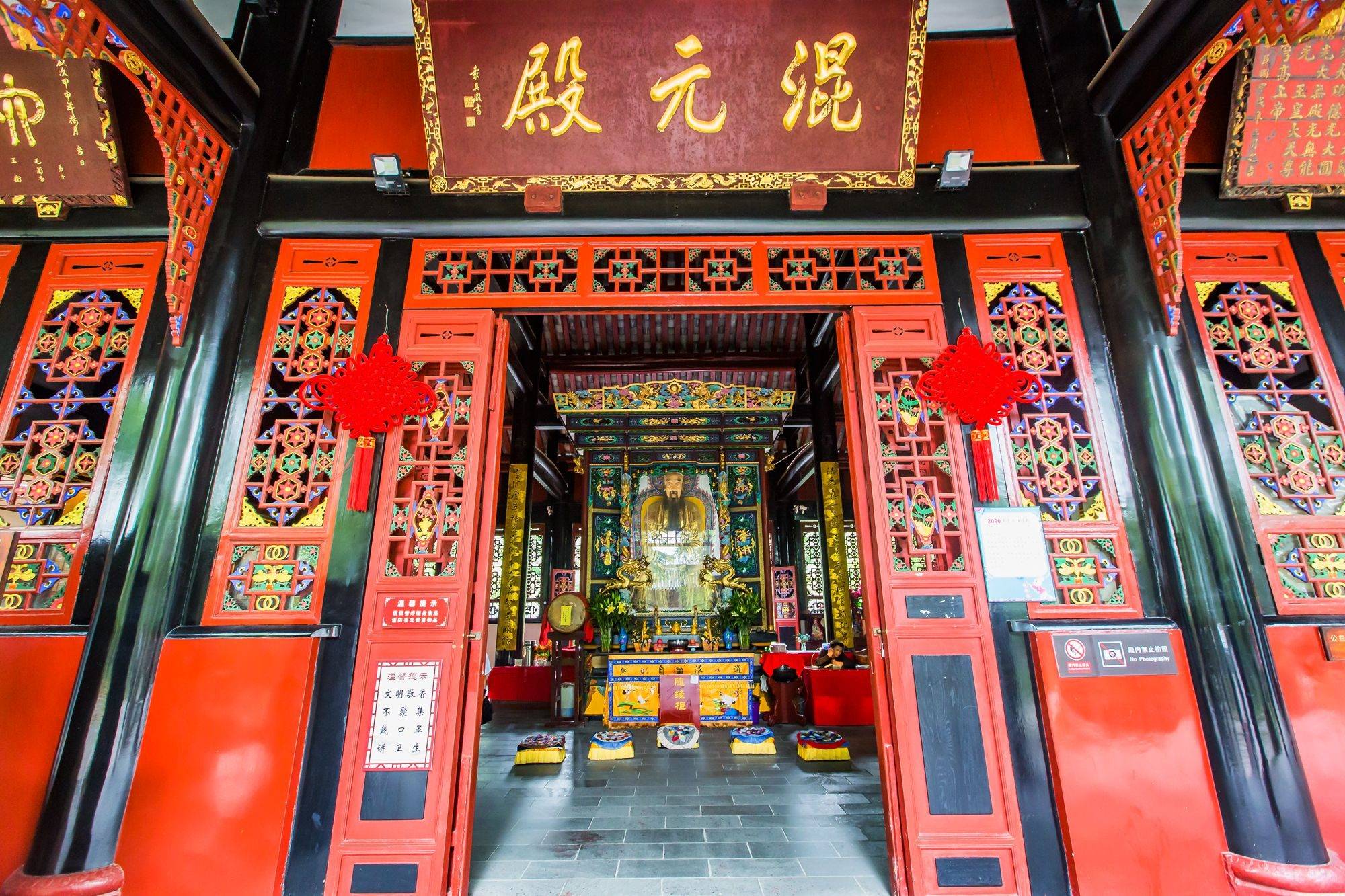 混元殿的门窗相当抢眼,不仅色彩丰富鲜艳而且都有镂空雕刻。图案生动精致,单是一一打量这些图就可以消磨掉许多时光。
