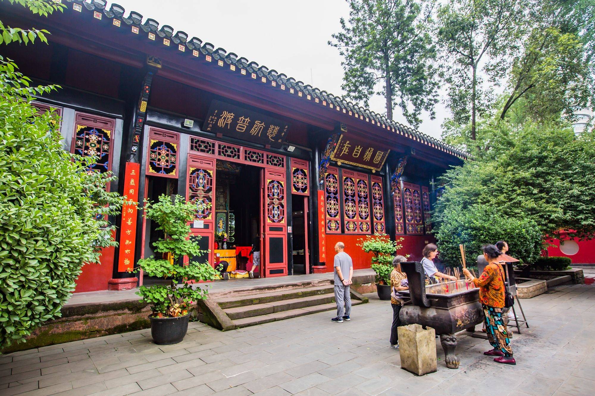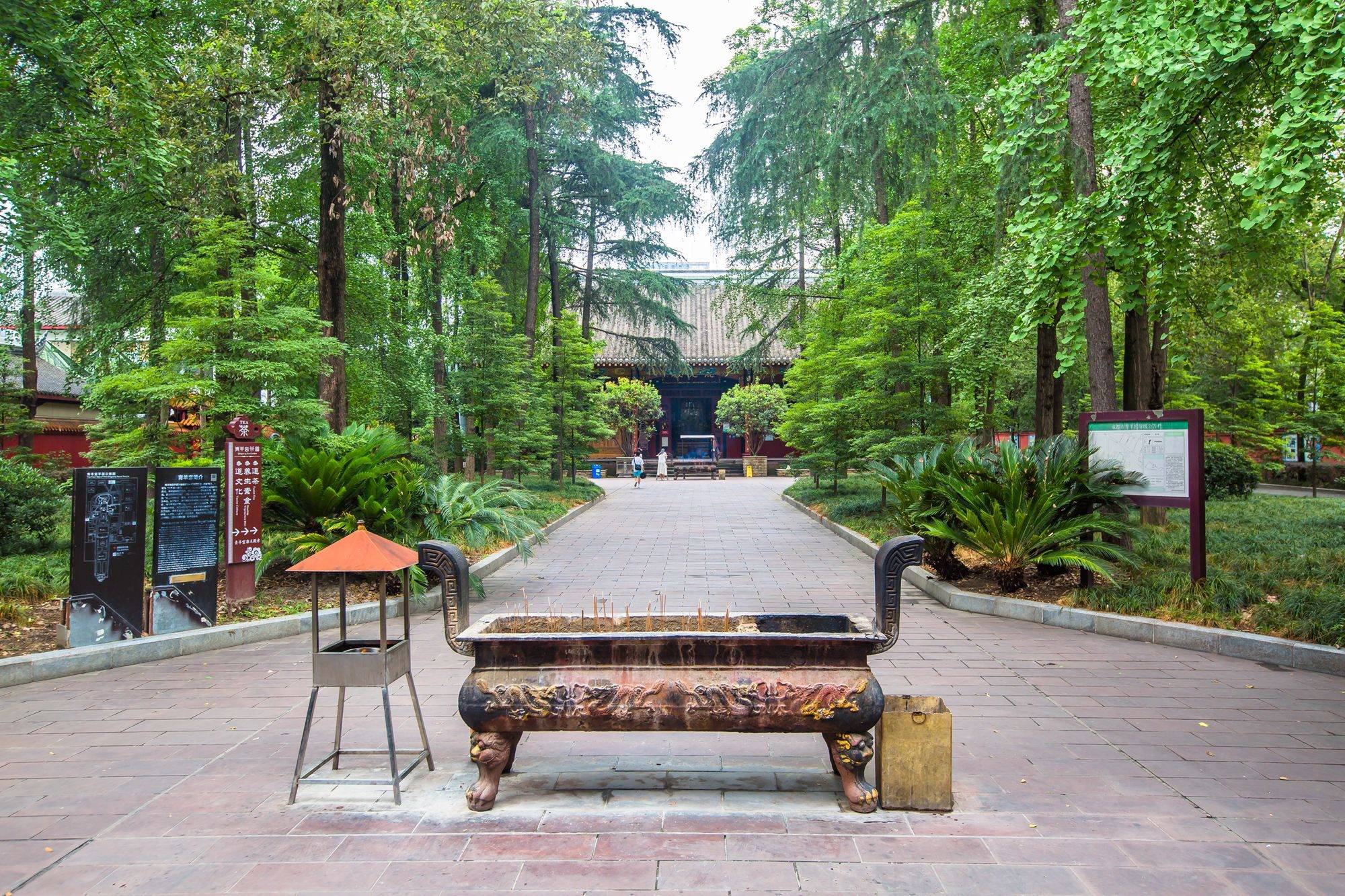 炎热的夏季走入青羊宫,眼前瞬间清凉下来,满目皆绿,郁郁葱葱的树木将周围的高楼大厦隔绝,耳边鸟声婉转,夏蝉鸣鸣,仿佛进入了另外一个天地,连温度似乎都低了许多。