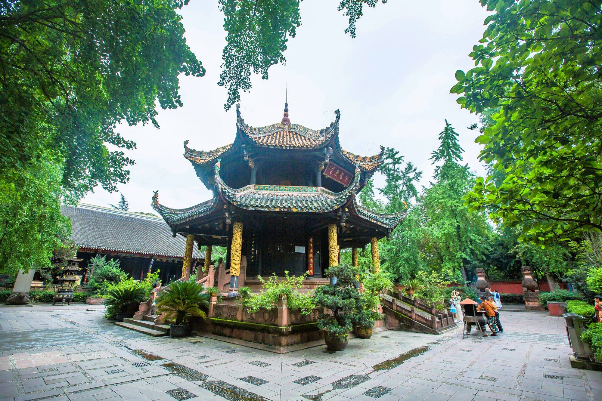 走在其中,树木葱郁,花草幽香,又可看到或雄伟或华丽的建筑,带着道教色彩的雕像、装饰,历史和宗教氛围拉满。