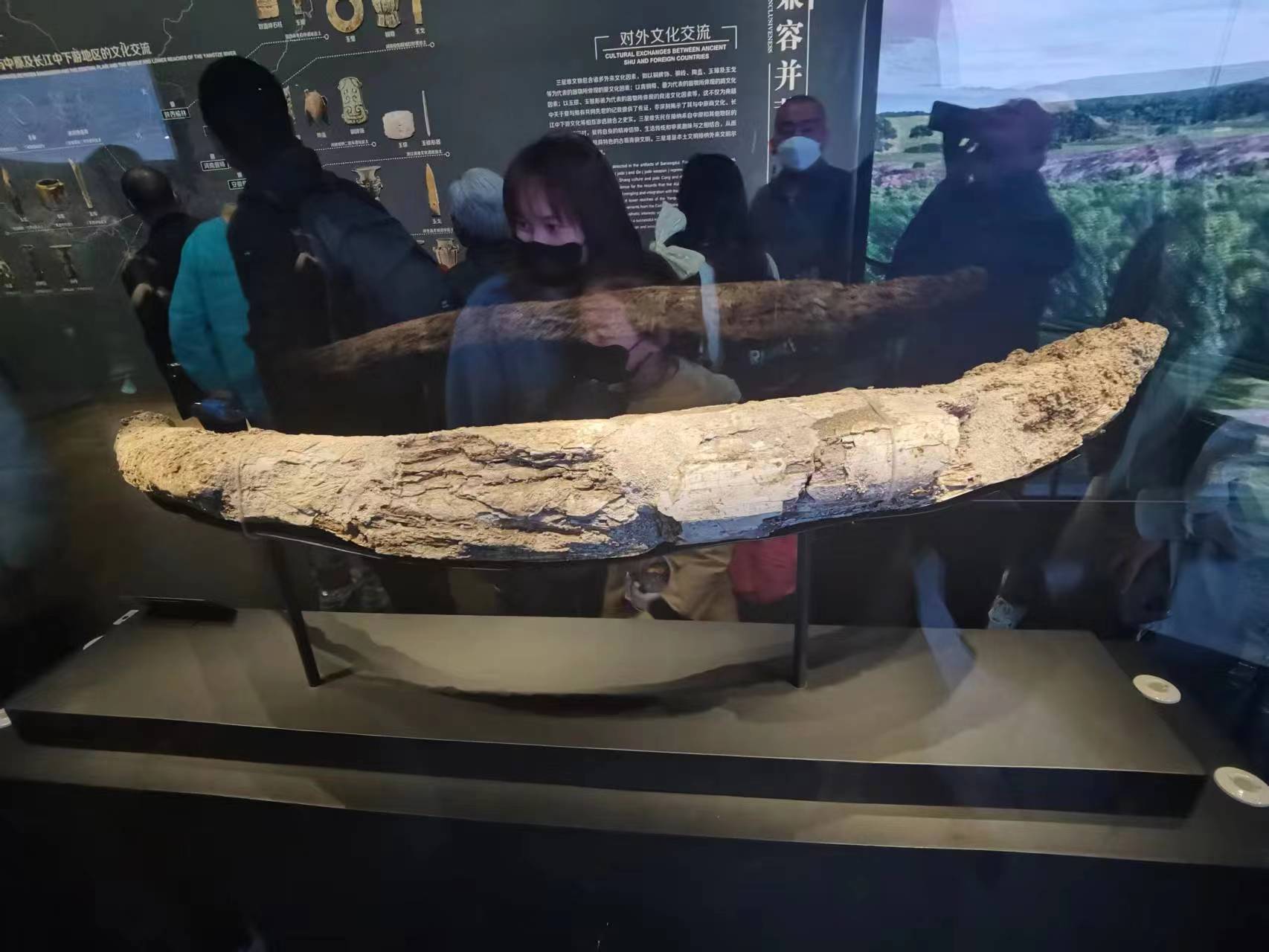 三星堆出土了很多象牙,但是由于现在的保护技术所限,出土后很快就会风化,因此采取了回埋的方式进行保护,展示的象牙损坏的已经比较严重了。