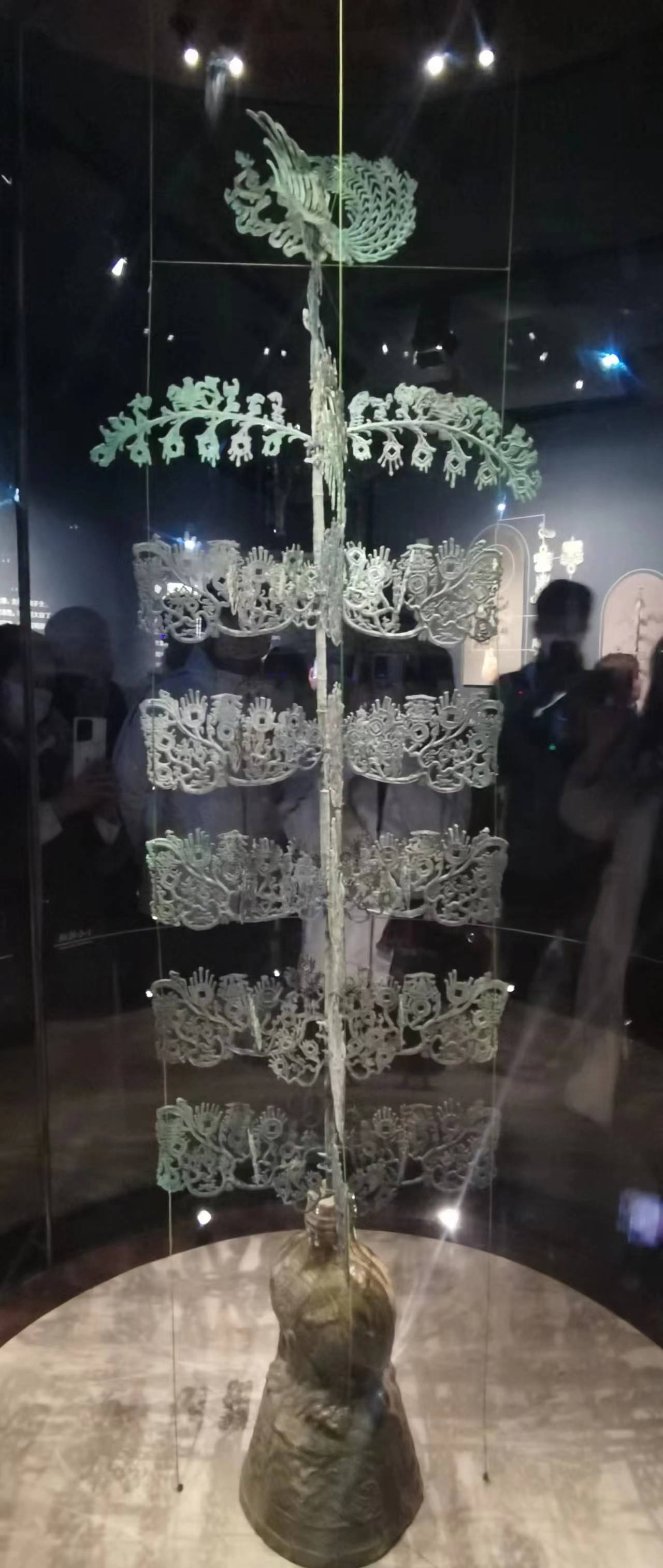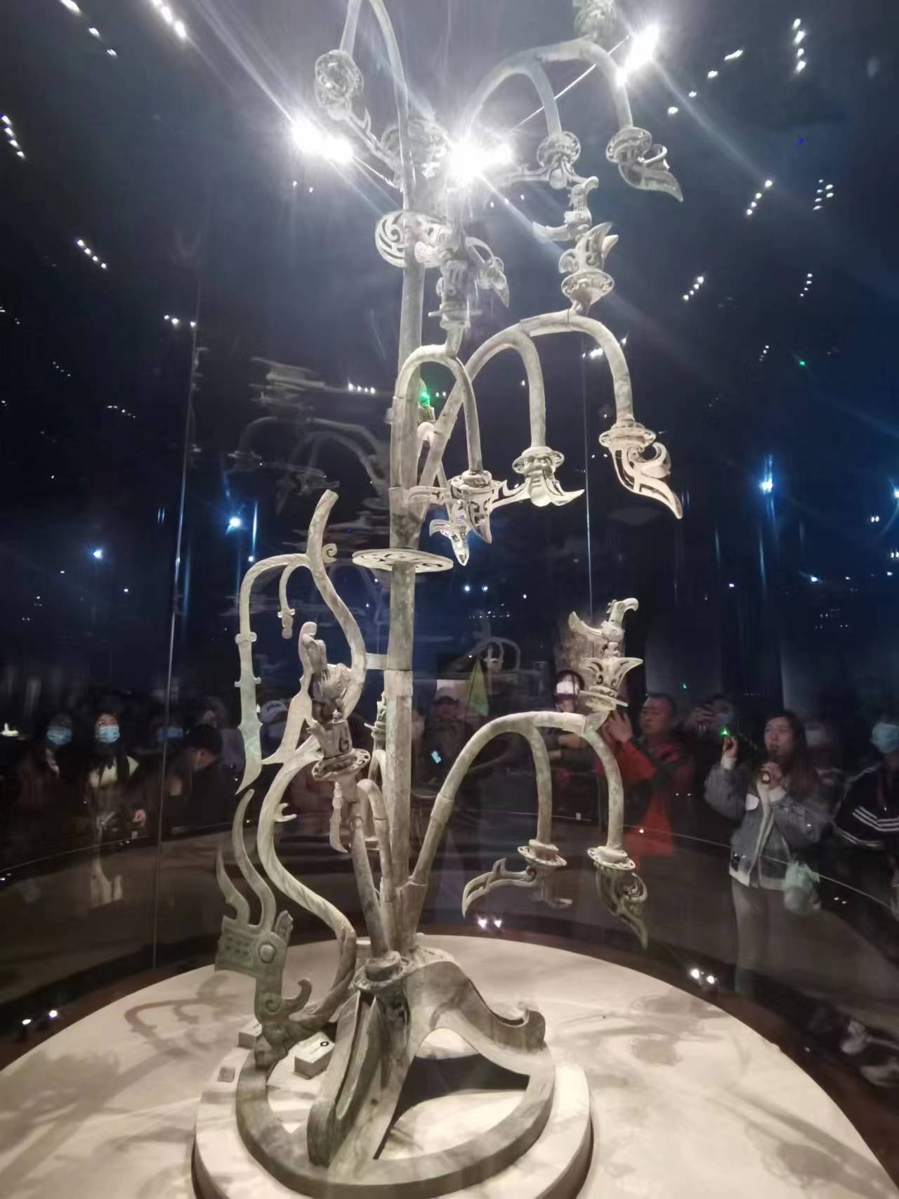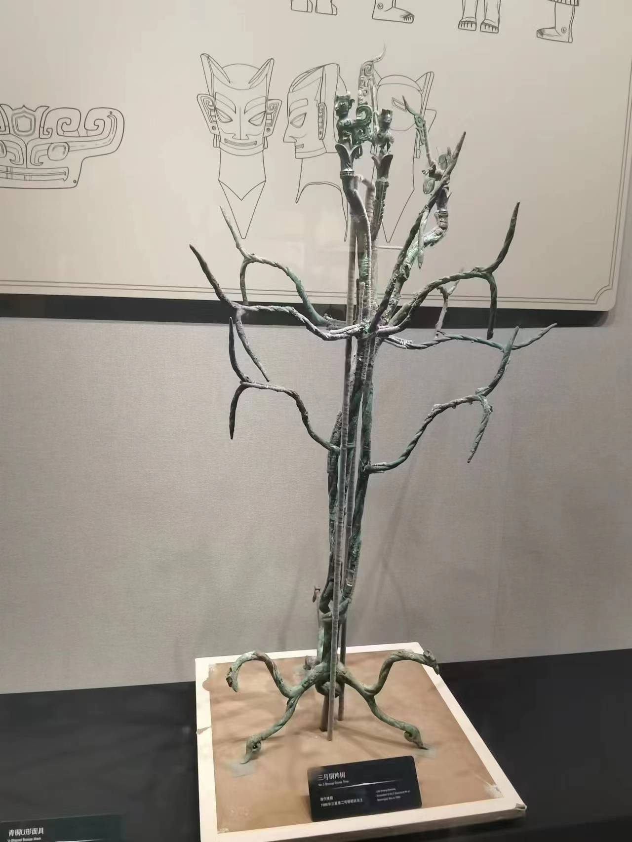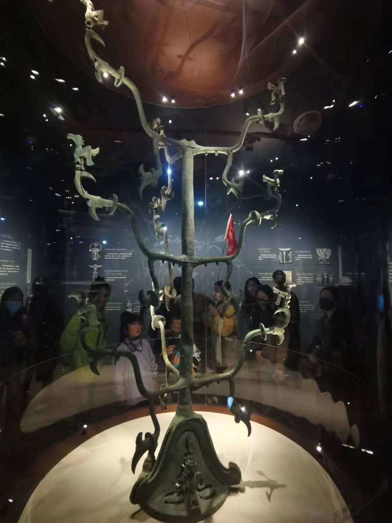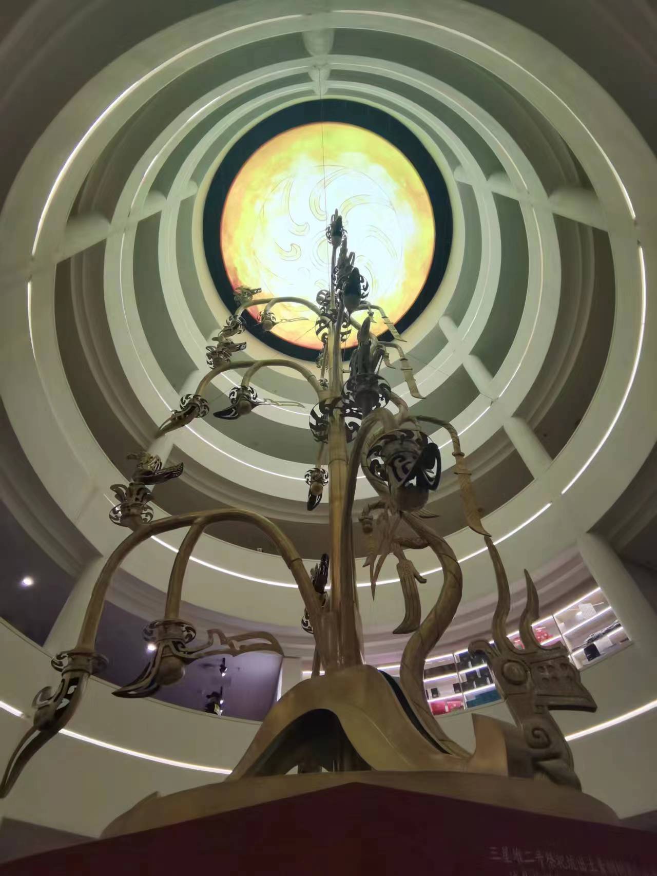 青铜馆是一个尖体建筑,展馆中央是一棵仿制的青铜神树icon,好似直入云霄。