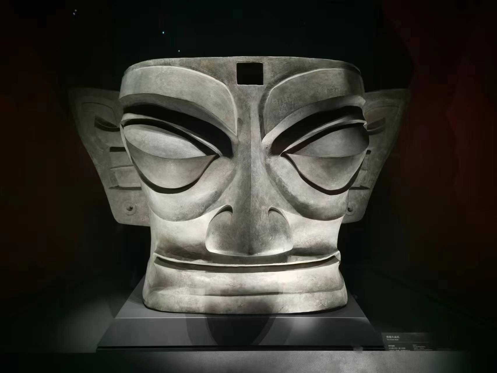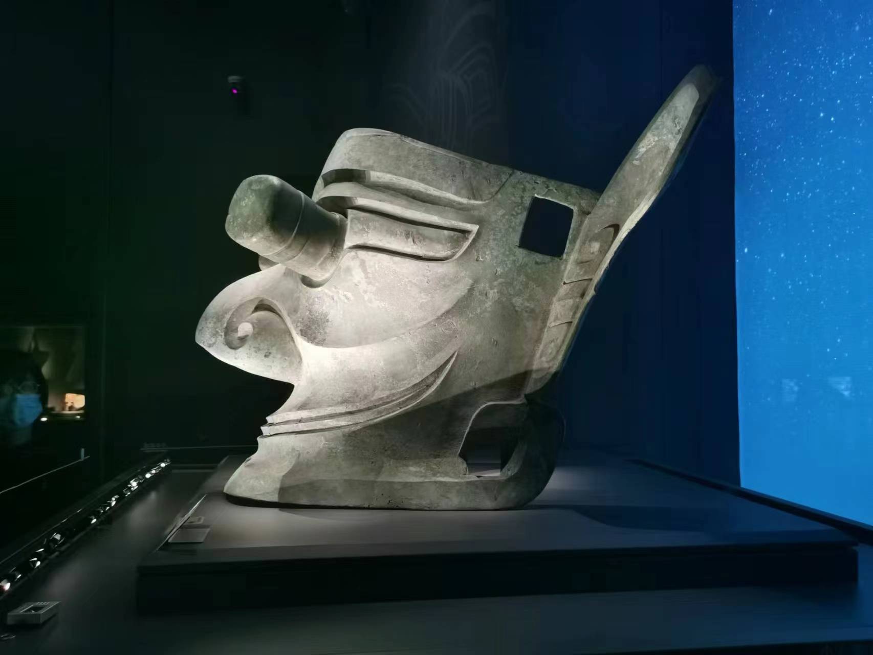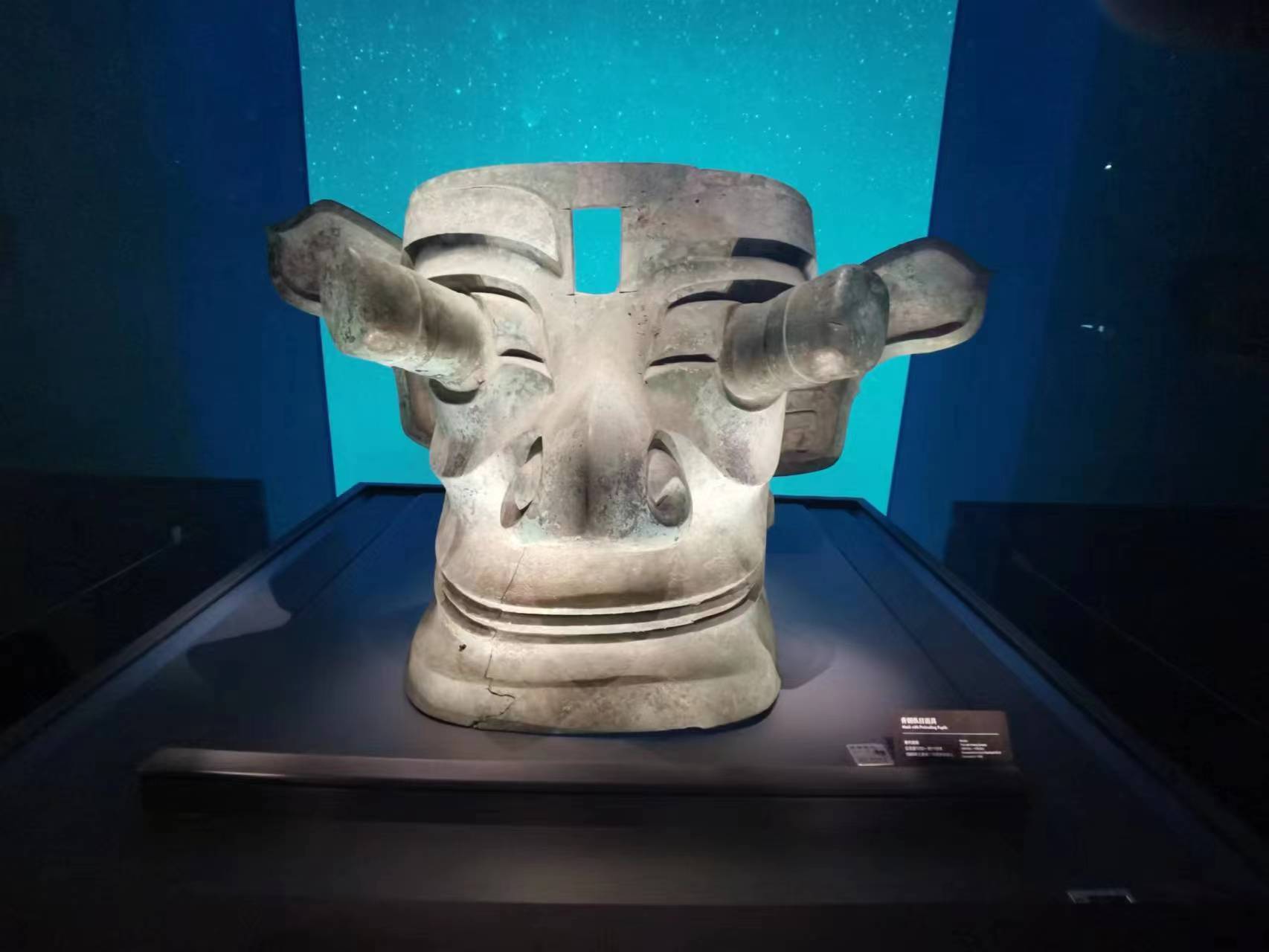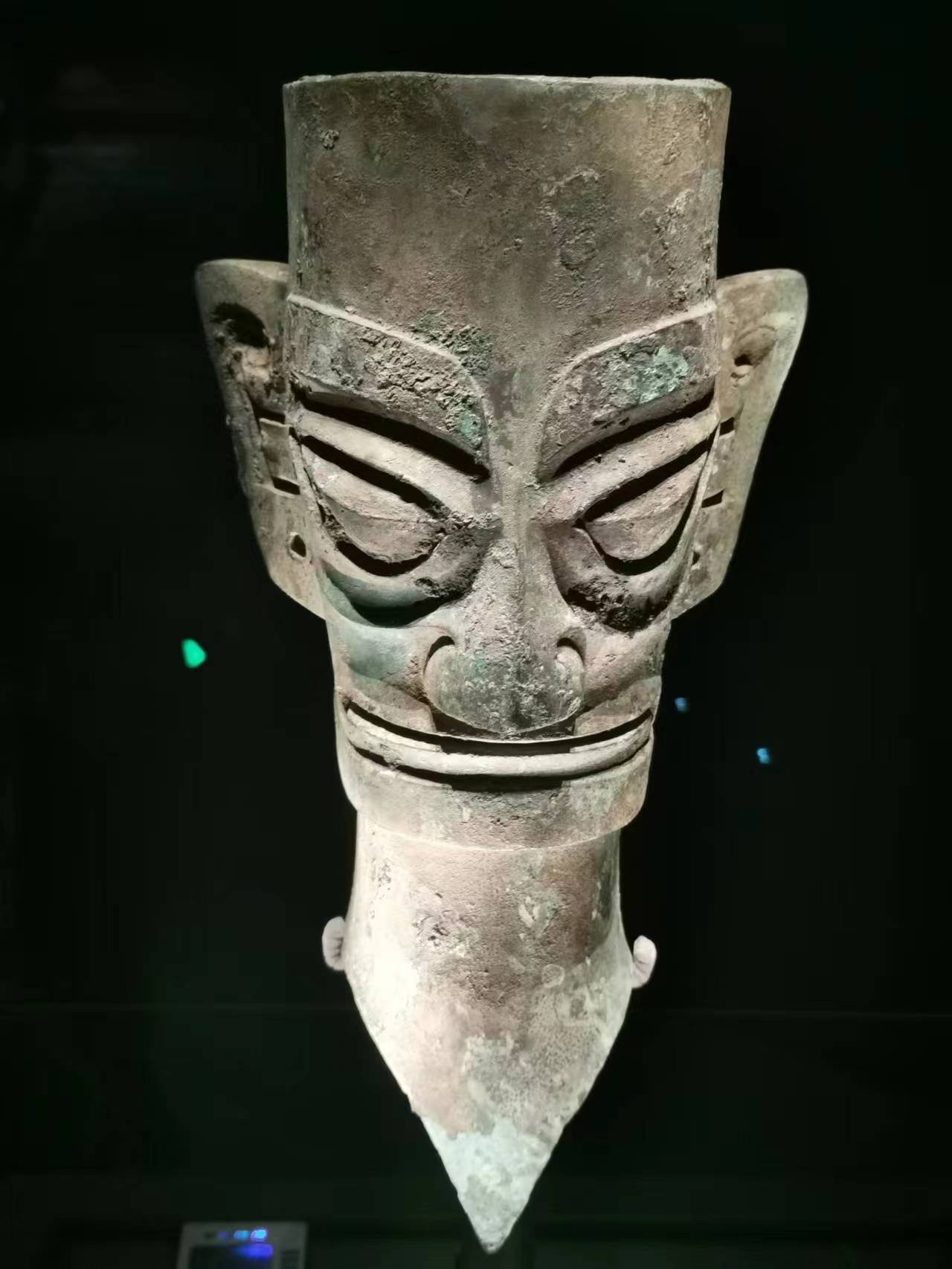 青铜馆里还展出了青铜头像,其中有戴有黄金面罩的头像,推断这个头像应当是当时的蜀王。