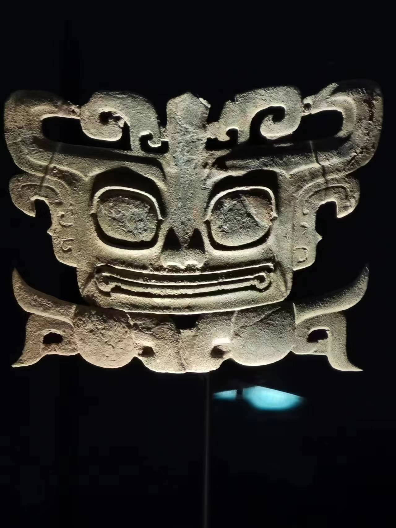 馆内首先展示的是各种青铜面具,薄片形状的面具应当是可以悬挂在某处。