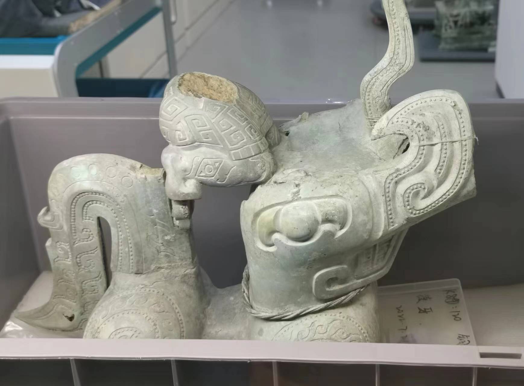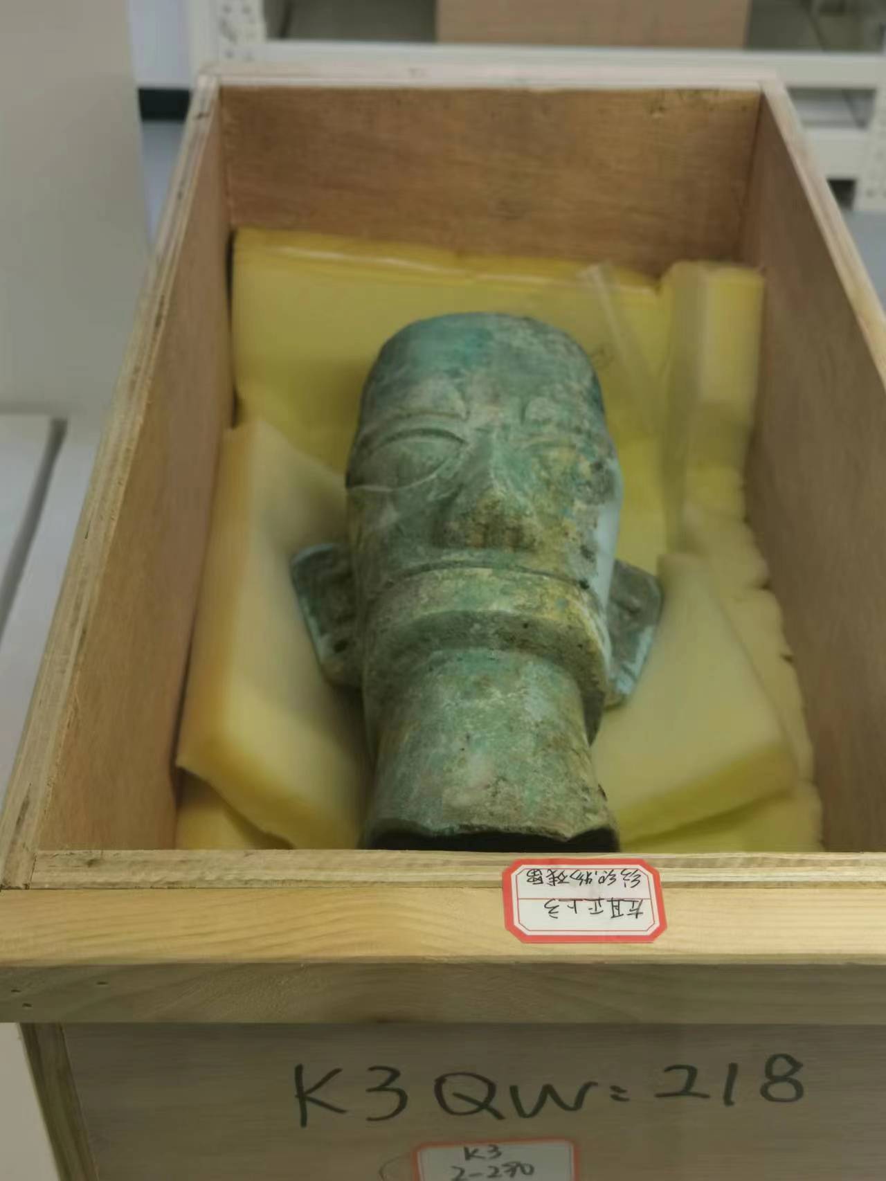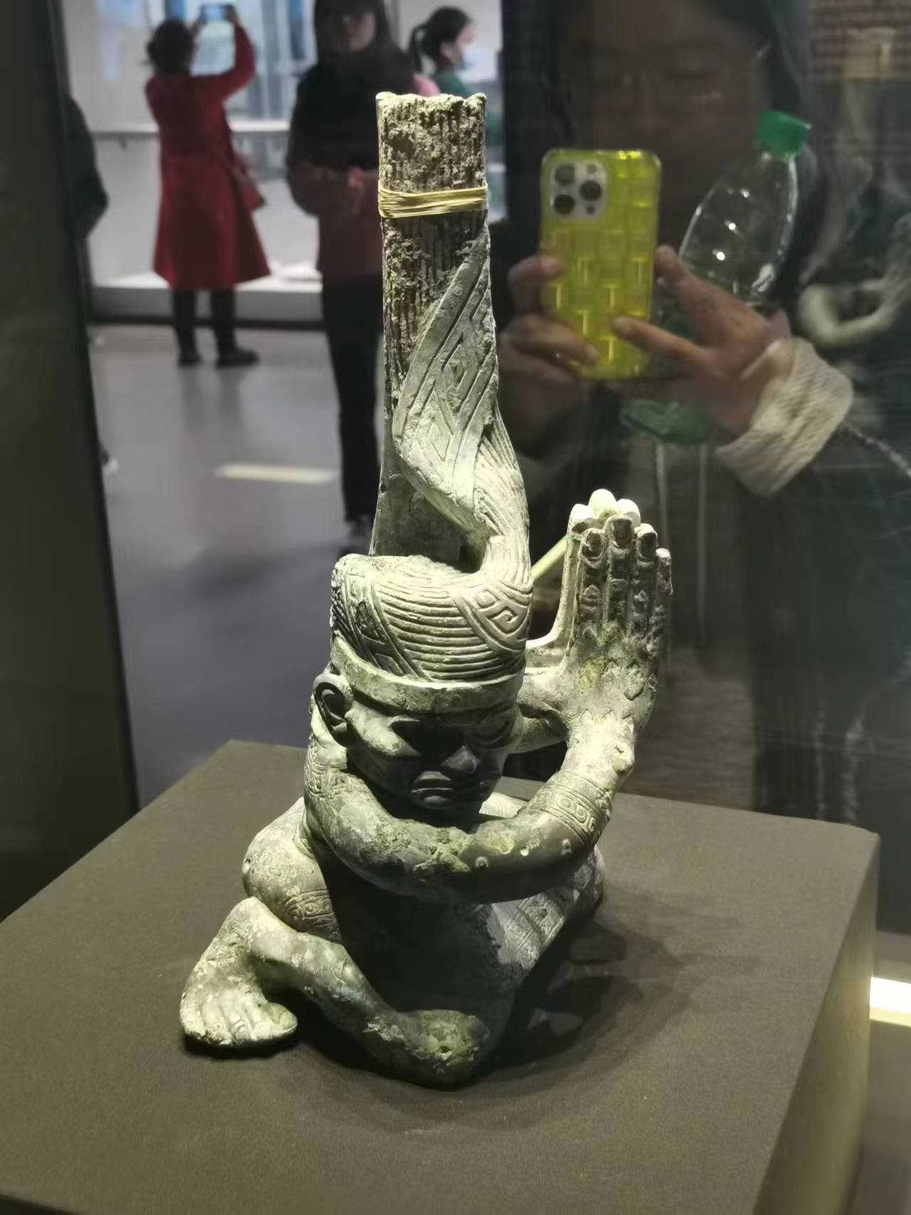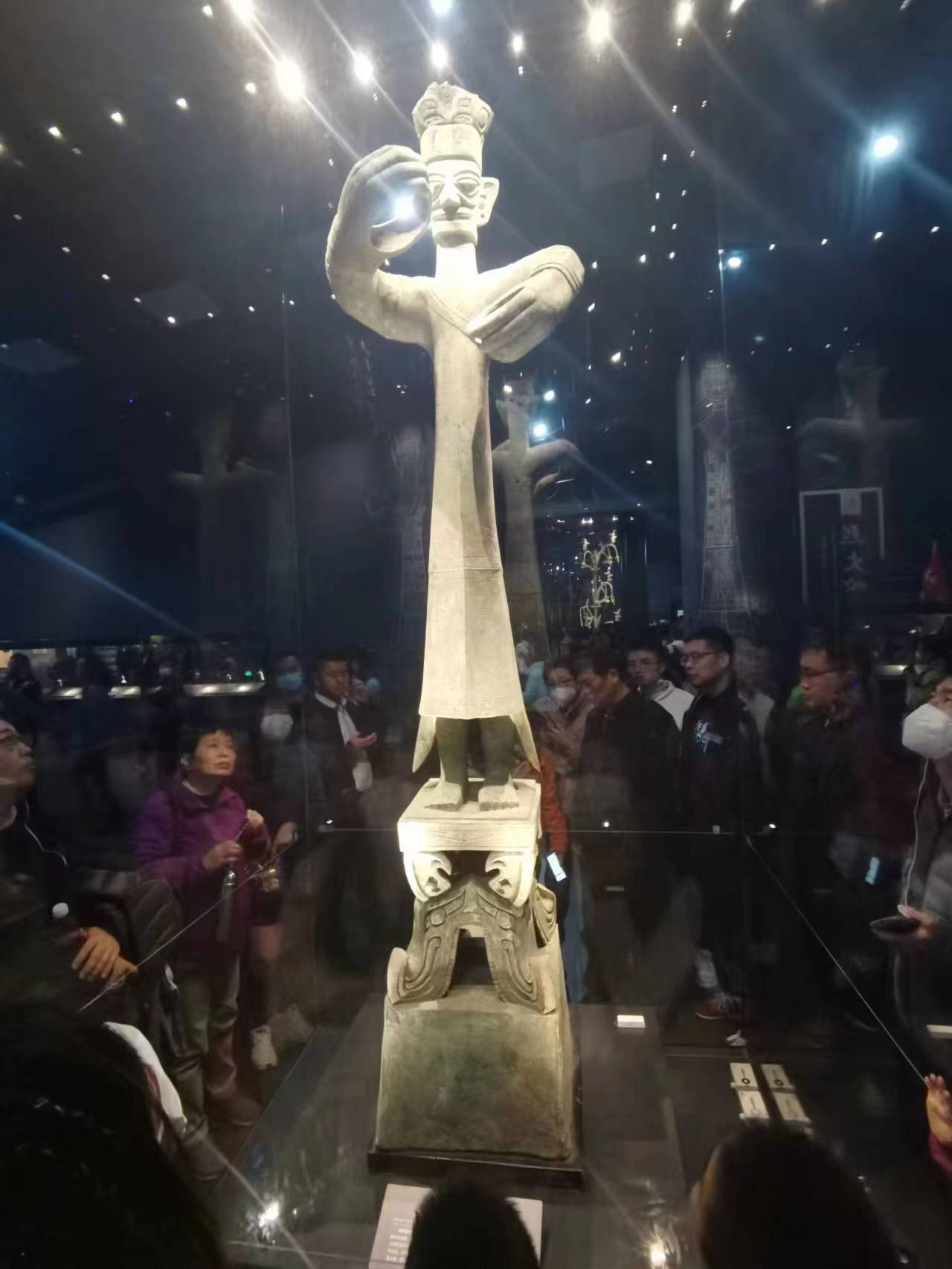 出了遗址博物馆,是修复馆,还有很多出土的文物等待修复,因我们参观的时间正值中午,工作人员都去用餐了,因此只拍了些待修复文物。其中修复好的一个小立人酷似现在的奥特曼。