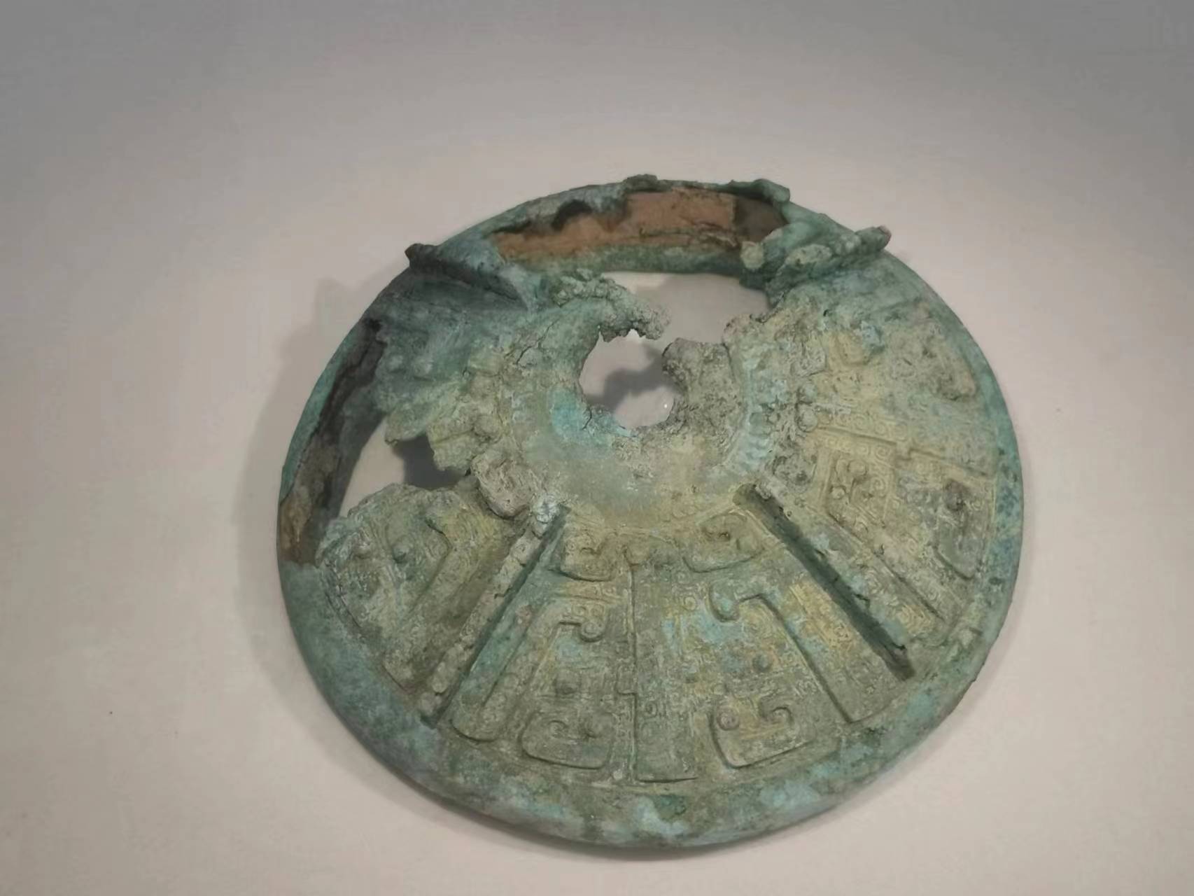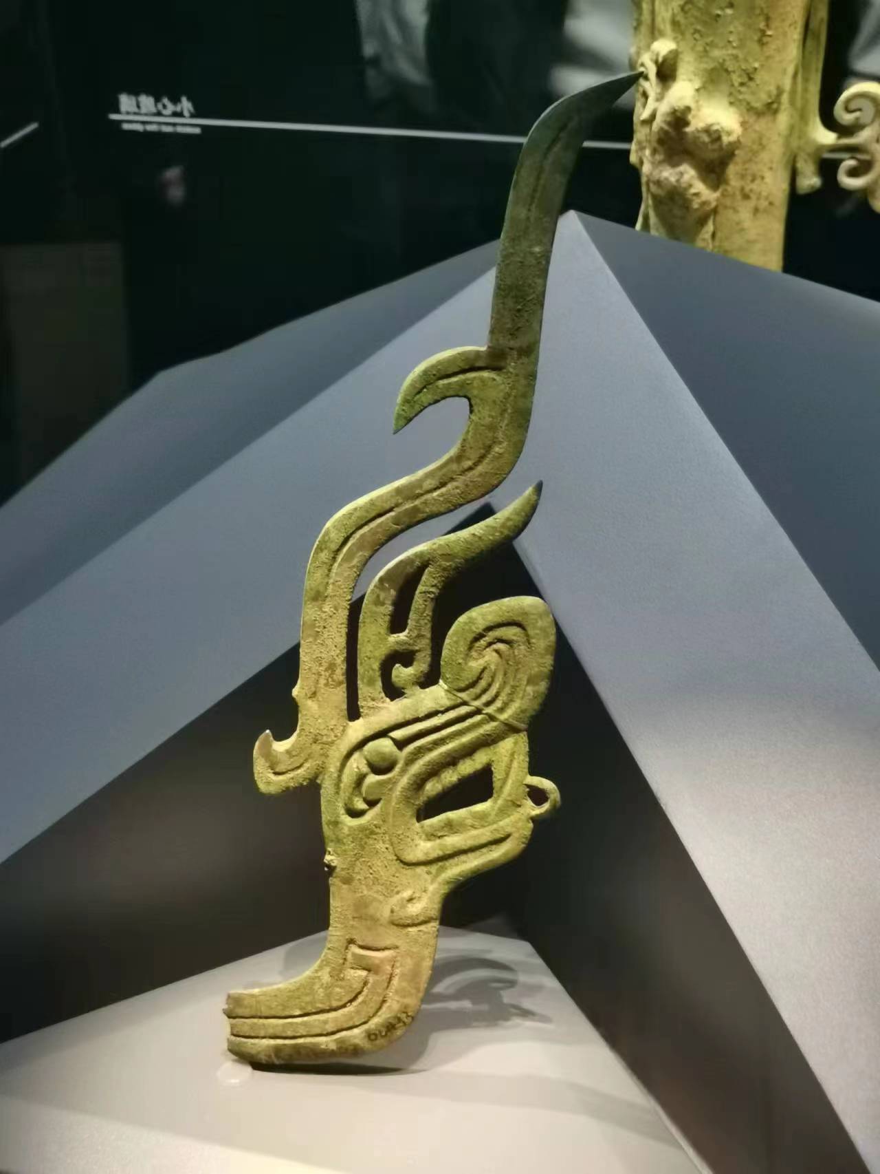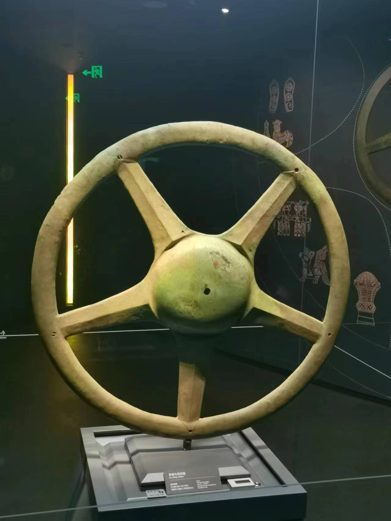 展厅中还有一个酷似方向盘的青铜器,应当是带有光晕的太阳形象,说明蜀人崇拜太阳。