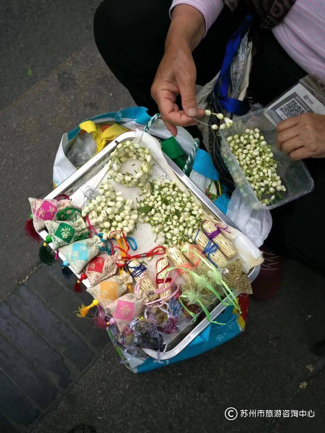 “栀子花,白兰花……”苏州的阿婆们,在山塘街的桥头、平江路的树荫下坐着,手里端着竹篮或竹匾,里面整齐摆放着一朵朵清晨刚采摘的白色小花,静候着寻香人的到来。
