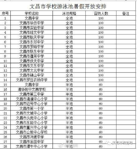 原标题:暑期海南文昌27所学校的28个学校泳池免费对本地学生开放