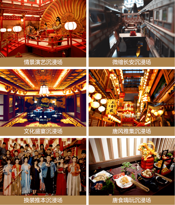 长安十二时辰主题街区以唐食嗨吃、换装推本、唐风雅集、微缩长安、情景演艺、文化盛宴等六大沉浸场为核心,集热门剧集IP、沉浸式娱乐、主题餐饮、国潮零售于一体,通过“全业态、全场景、全时段”的商业模式构建,让游客“观一场唐风唐艺、听一段唐音唐乐、演一出唐人唐剧、品一口唐食唐味、玩一回唐俗唐趣、购一次唐物唐礼”,领略大唐繁华。