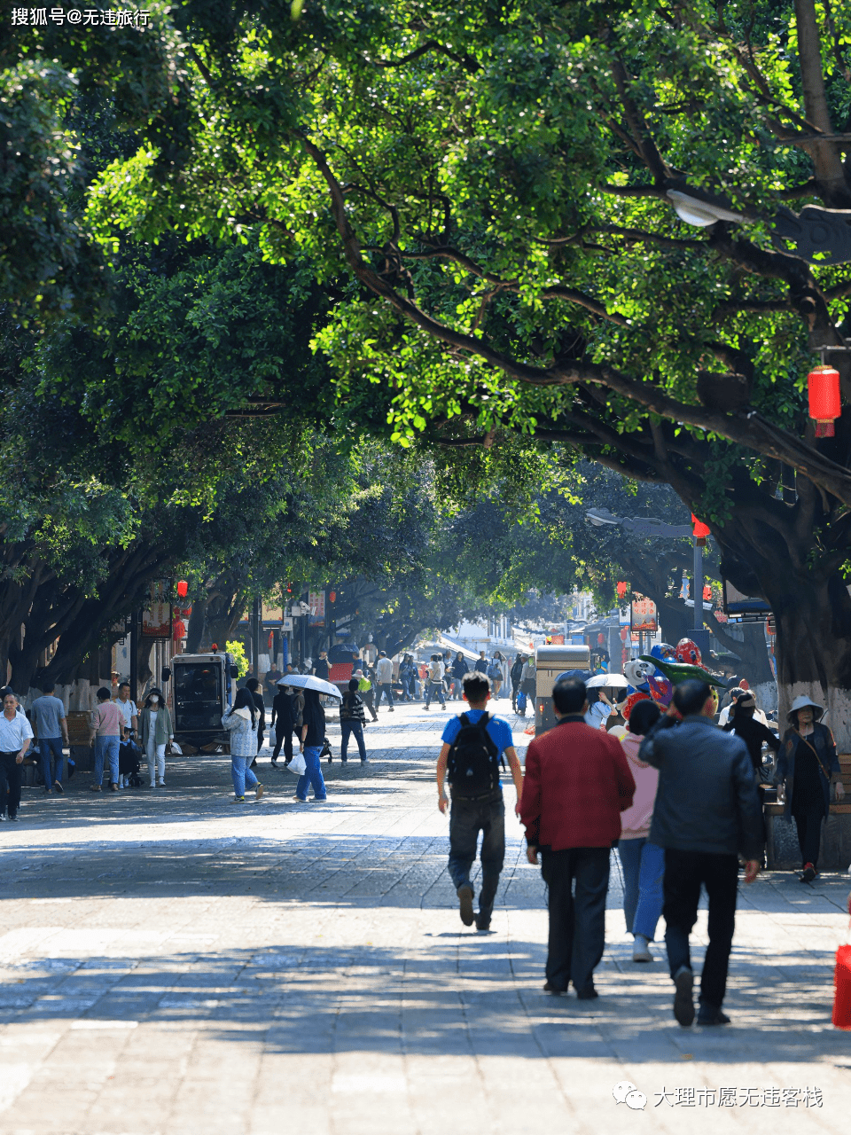 ✅穿过朝阳楼进入建水古城,一条笔直的临安路出现在眼前。道路两边是茂盛高大的树木,枝干弯曲向路的中央,加上光滑铮亮的青石板路,有点曲径通幽的感觉,而且一下就清凉舒服多了。