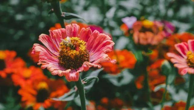 不时还能看到蜜蜂在花朵上飞舞。
