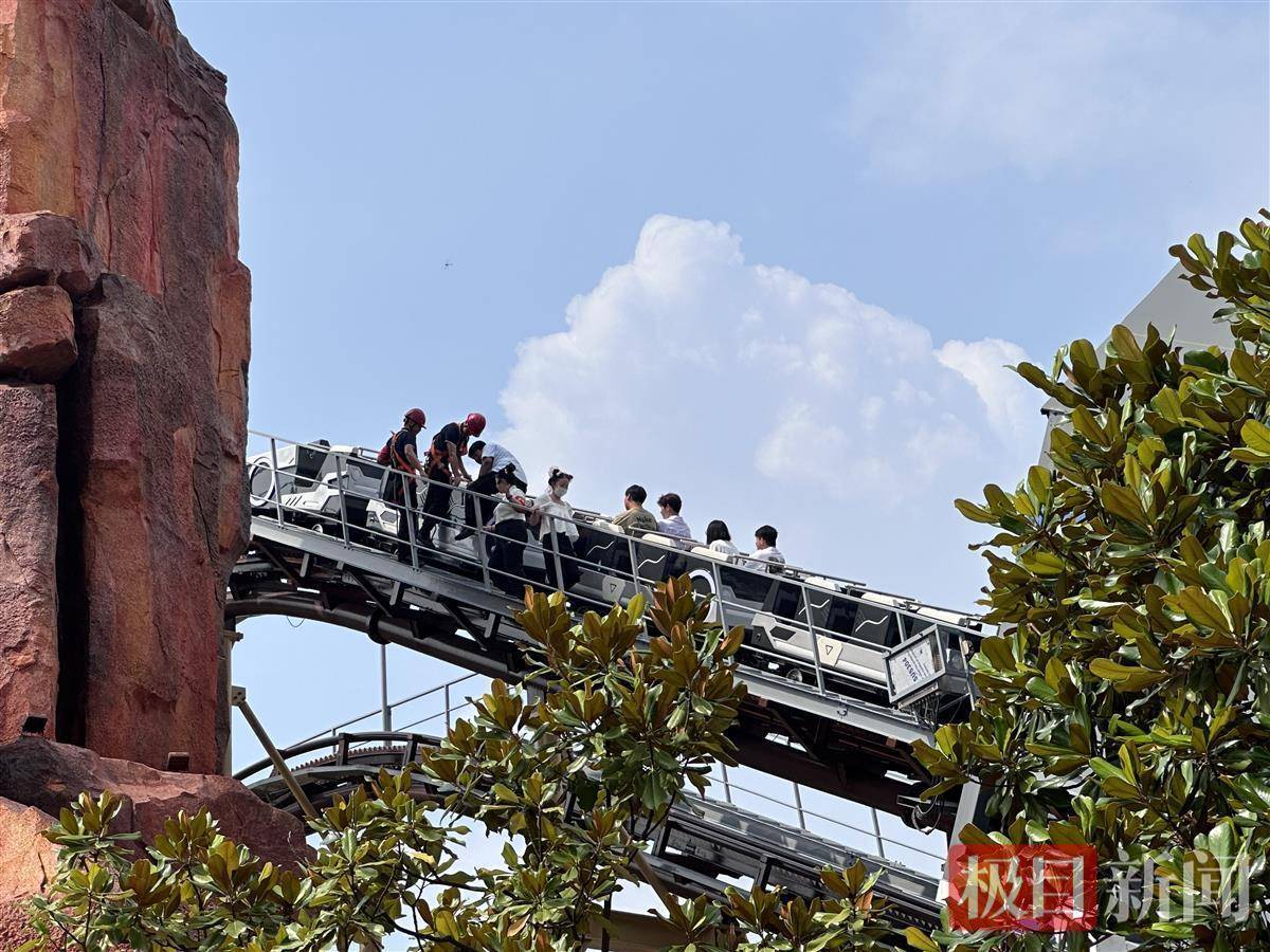 星际旅行矿车是武汉欢乐谷速度世界主题区升级改造后的热门项目之一,最高时速可达40公里/小时。当日9时30分,作业过程中设备突然“失灵”,车体滞留在距地面15米的“电梯2号舞台”顶部,车内有10名游客被困。