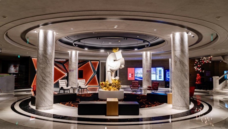 ●同时我们也和当下非常火爆的潮玩艺术品牌跨界合作,与知名IP The victors kiss签约了行业独家授权合作,这个IP的设计主理人BBKK本身就是泡泡玛特®非常受欢迎的艺术家之一,他亲自为每一间丽芮酒店定制化设计,所以你会看到很多突破传统酒店的新玩法,例如巨大的雕塑,浮雕版画,扭蛋机,盲盒,以及联名周边产品等等。
