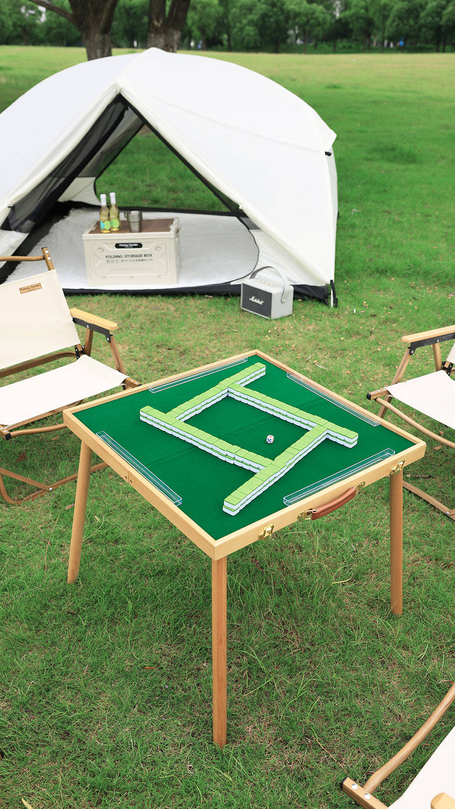 露营配麻将有多火,应该不用我多说了吧!!懒人们露营想打发时间,可以试试这种麻将桌,手提箱式的造型,携带很方便,而且自带麻将,话不多少搓起来,看看今天谁手气最佳!