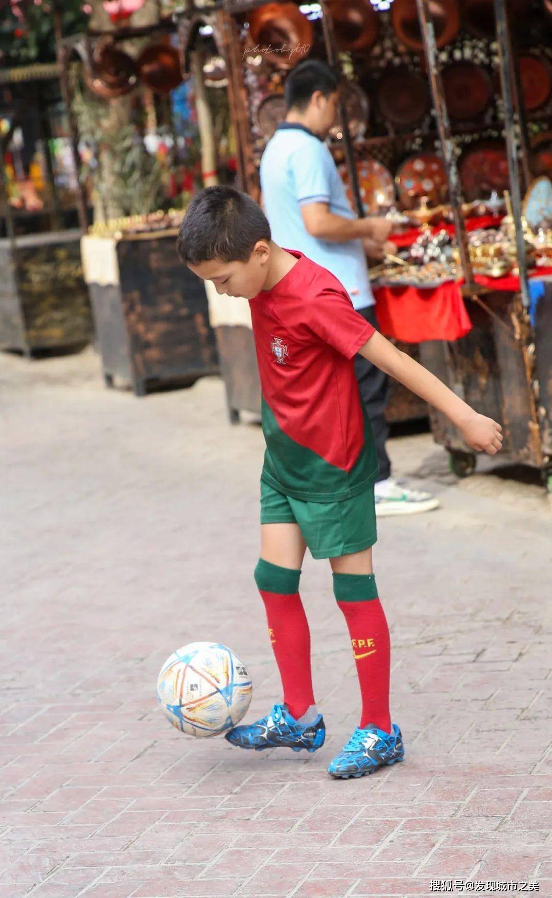 今早在古城里碰到一个穿着葡萄牙国家队服的小孩正在踢球,