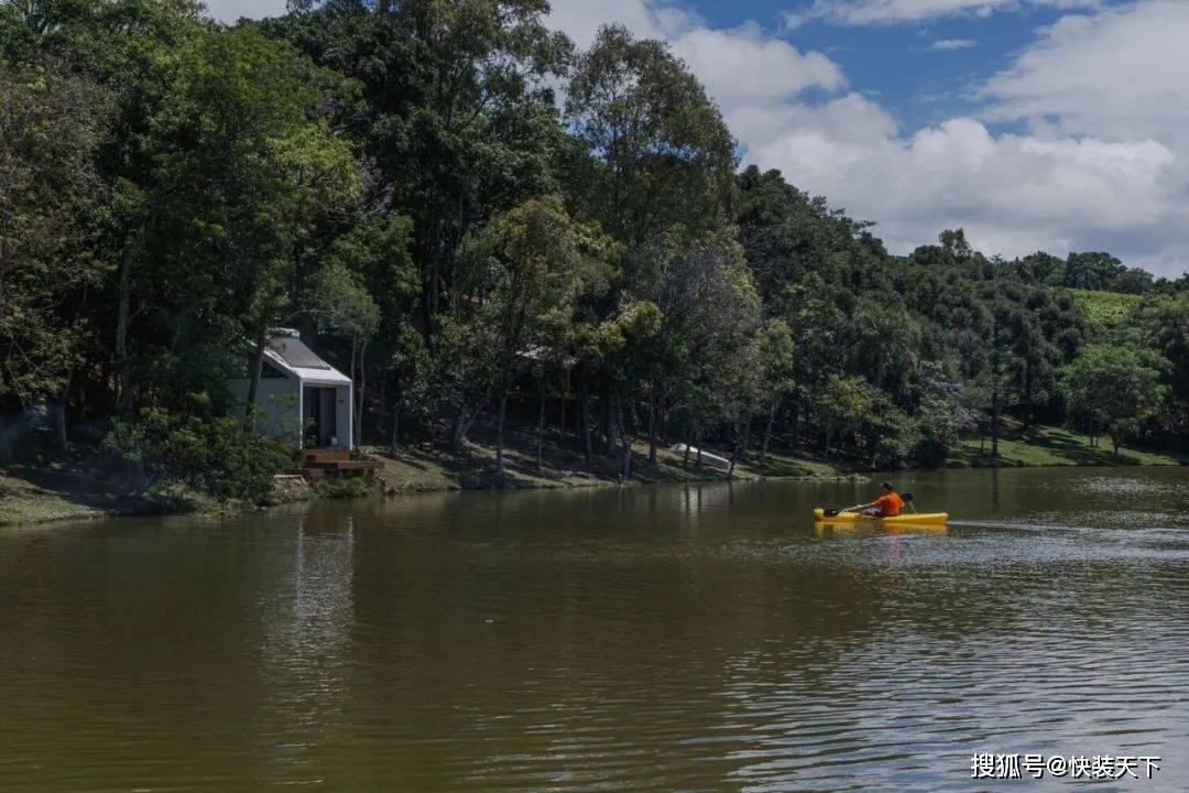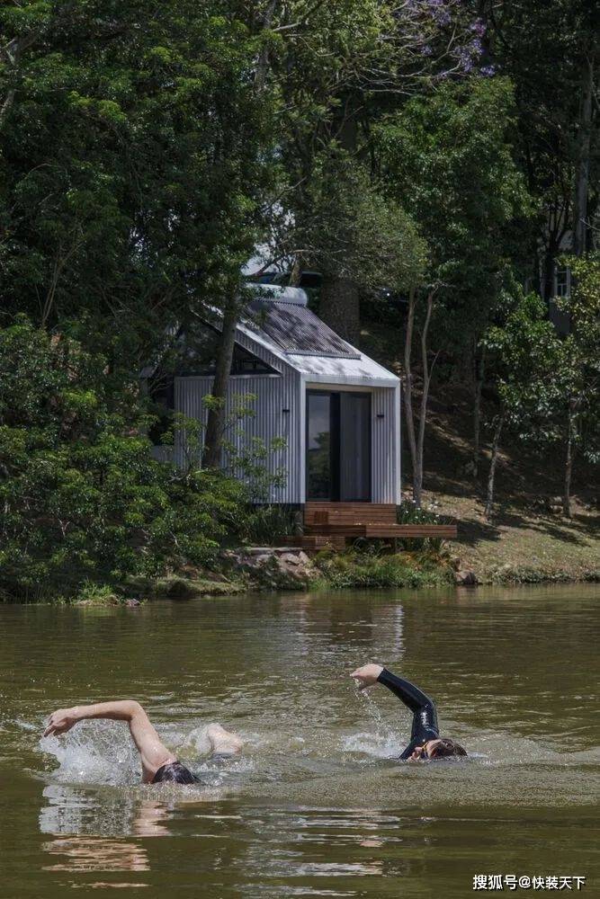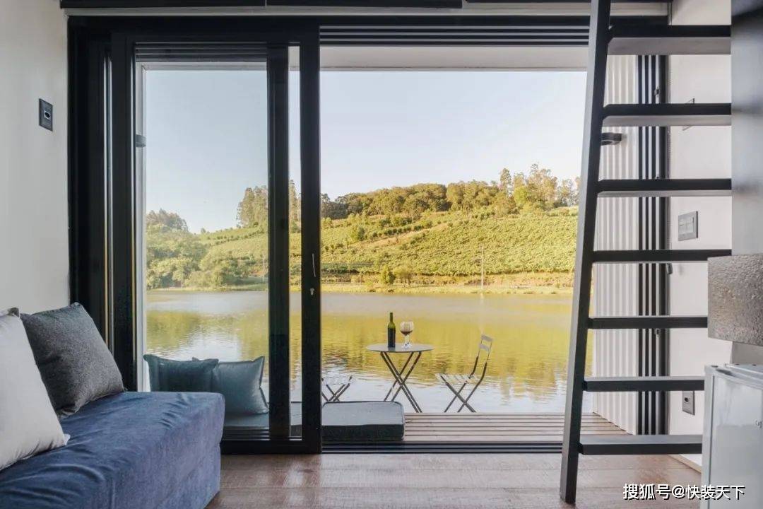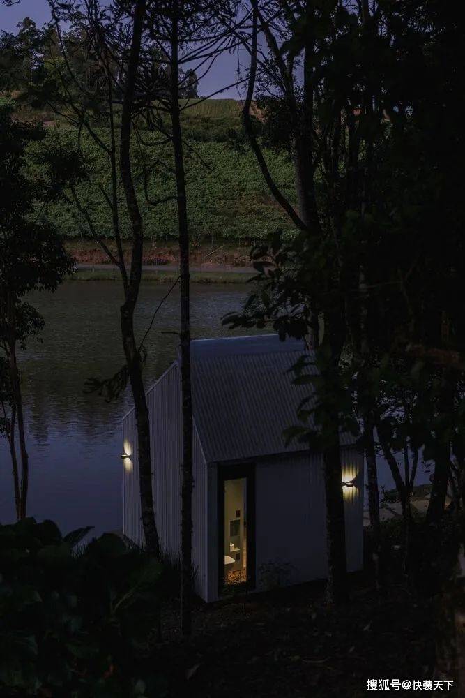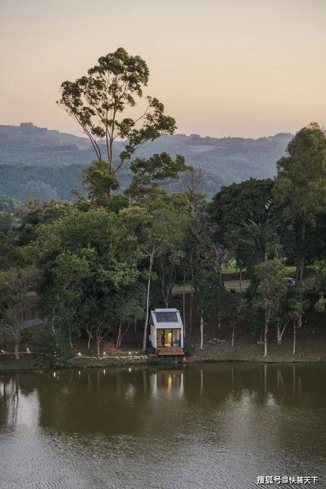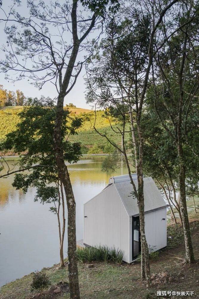 项目一完成,人们就明白“户外”测试其功能是很有趣的。整个结构都是预先组装好的,直到它被插入的位置——塞拉高查内部的一个南里奥格兰德州。选择的位置是战略性的。插入之间的树木,插入在一个现有的环境,面对湖泊和美丽的 Vale dos Vinhedos 地区景观。从内部空间的感觉是在一艘船里,因为视野。As soon as the project was completed, it was understood that it was interesting to test its functionalities "outdoors". The entire structure was pre-assembled up to the location where it would be inserted: a site in the interior of Serra Gaucha, in Rio Grande do Sul. The chosen position was strategic. Inserted between trees, inserted in an existing environment, and facing a lake and a beautiful landscape of the Vale dos Vinhedos region. The sensation from inside the space is that of being inside a boat, because of the view.