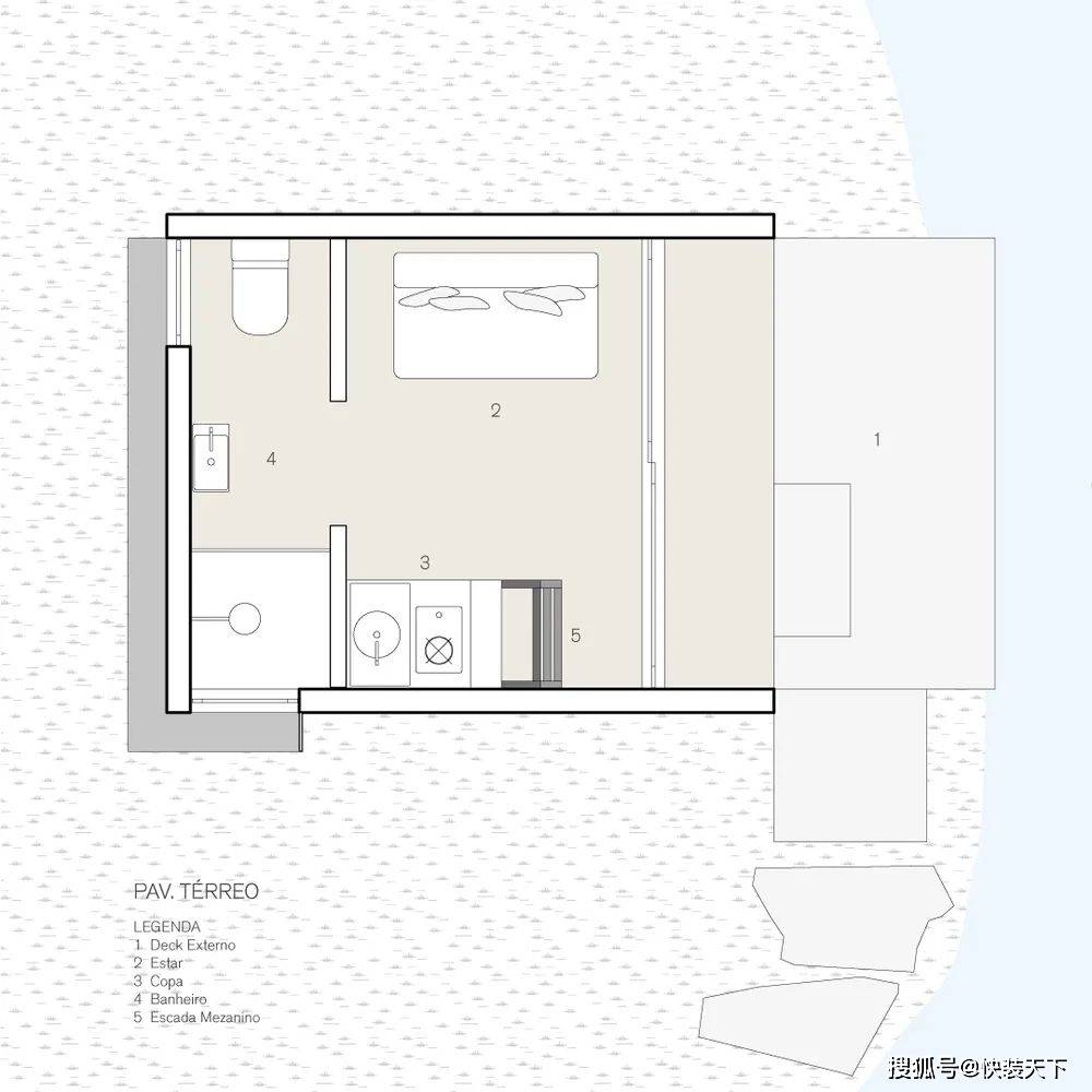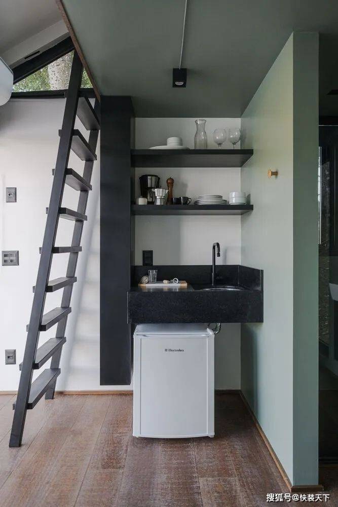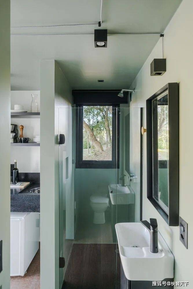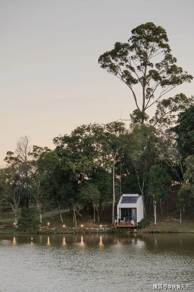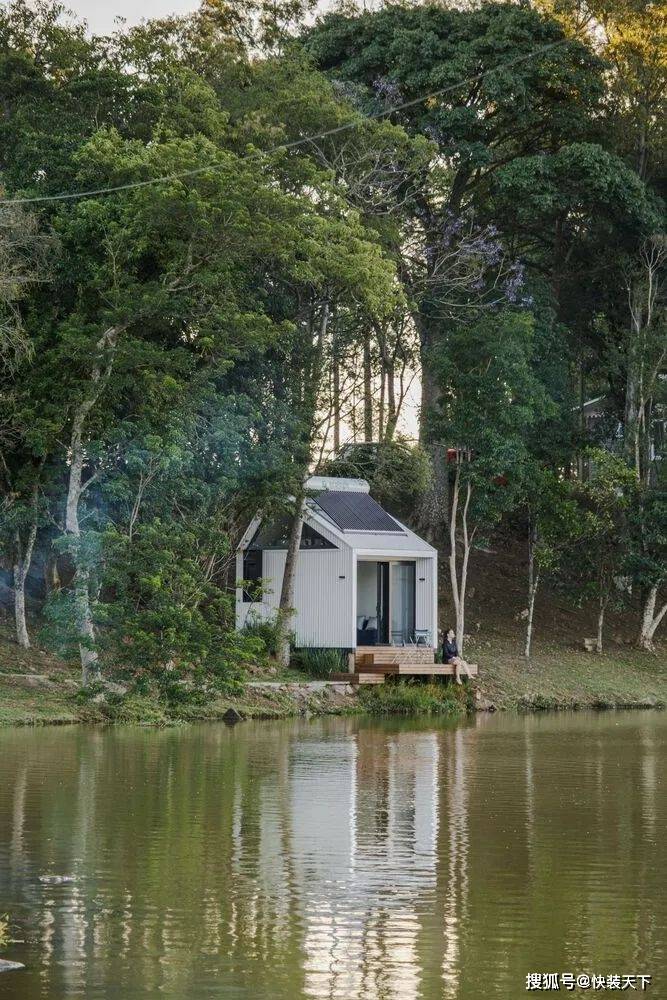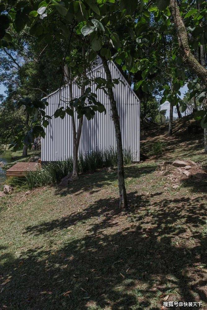 项目一完成,人们就明白“户外”测试其功能是很有趣的。整个结构都是预先组装好的,直到它被插入的位置——塞拉高查内部的一个南里奥格兰德州。选择的位置是战略性的。插入之间的树木,插入在一个现有的环境,面对湖泊和美丽的 Vale dos Vinhedos 地区景观。从内部空间的感觉是在一艘船里,因为视野。As soon as the project was completed, it was understood that it was interesting to test its functionalities "outdoors". The entire structure was pre-assembled up to the location where it would be inserted: a site in the interior of Serra Gaucha, in Rio Grande do Sul. The chosen position was strategic. Inserted between trees, inserted in an existing environment, and facing a lake and a beautiful landscape of the Vale dos Vinhedos region. The sensation from inside the space is that of being inside a boat, because of the view.