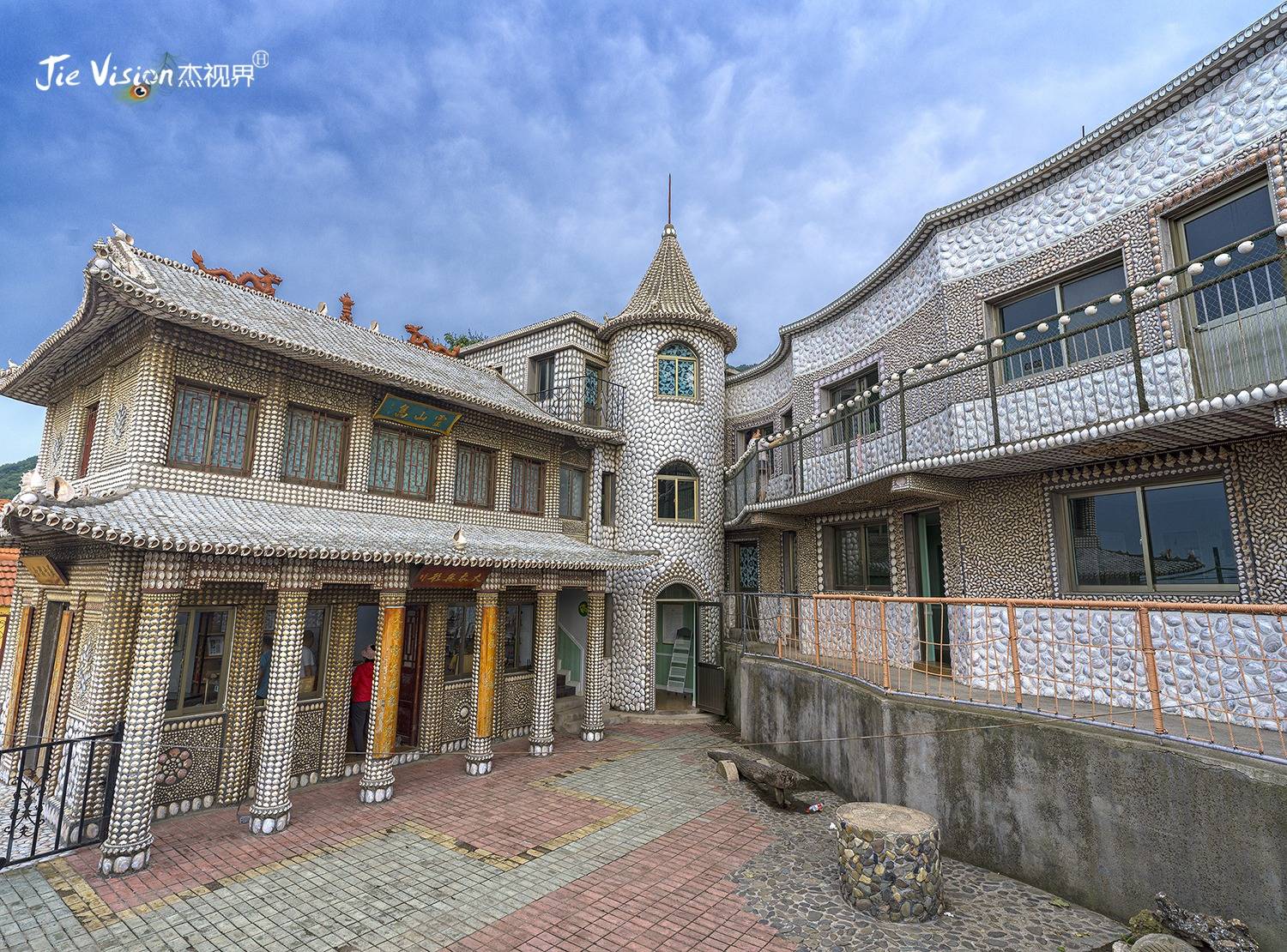 贝壳楼使用了500多个品种的超过100万只各式流光溢彩的贝螺原壳,堪称“世界第一贝壳楼”。贝壳楼不仅展示了"永生文化"独异于世的艺术风格,还展现了海洋世界奇珍异宝的多彩魅力,当之无愧地成为灵山岛标志建筑。