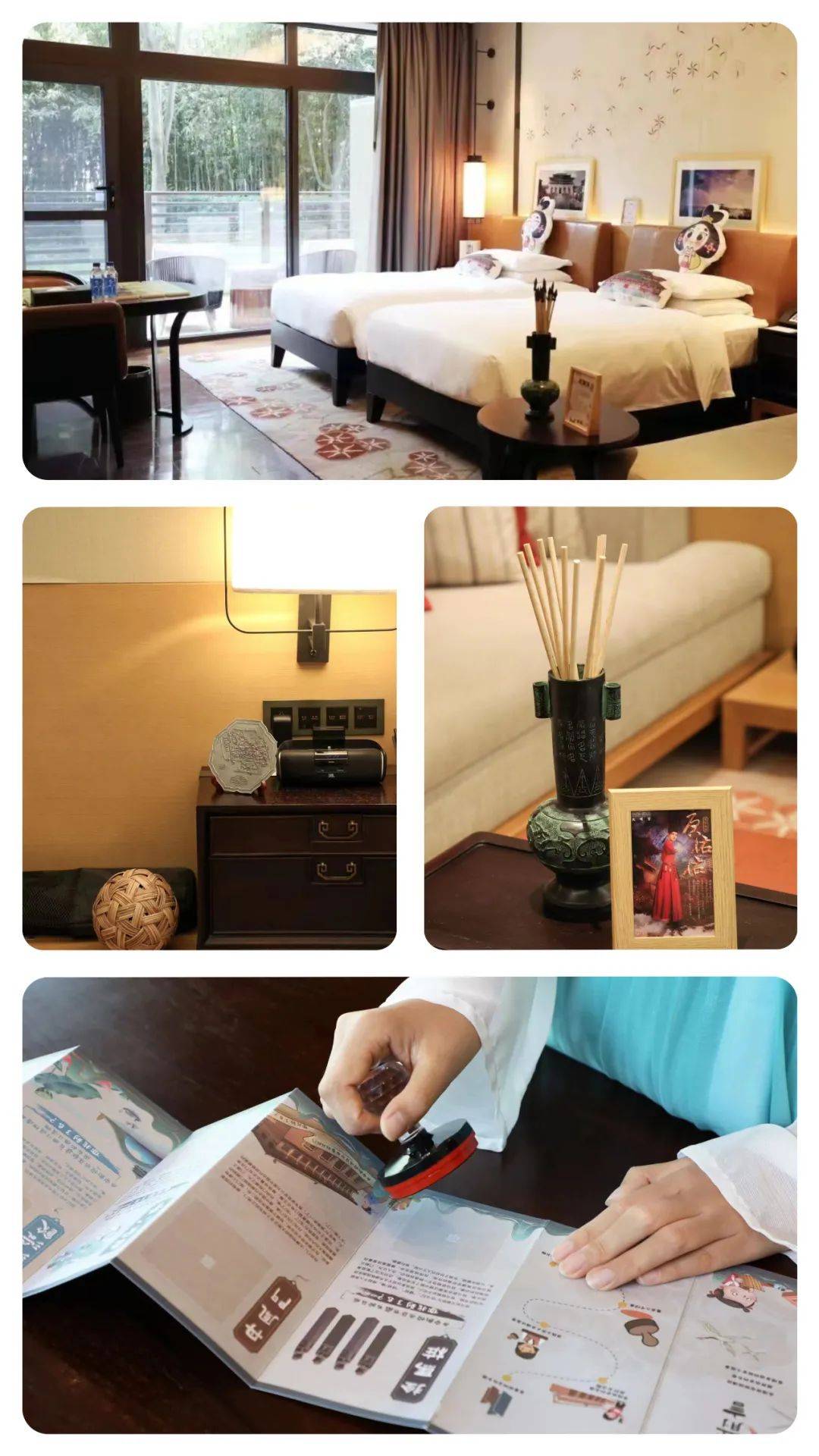 走进酒店,十三朝古都的历史如画卷般徐徐展开。中国灯笼、剪纸艺术和官方印章等元素重新诠释中国传统文化,各种巧妙的细节无处不在展示着大唐的繁荣景象。从陈列的艺术品,前台的设计,到客房的门牌,饱满石榴图案随处可见,带来美好的吉祥寓意。