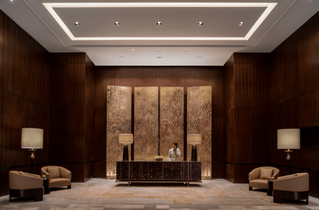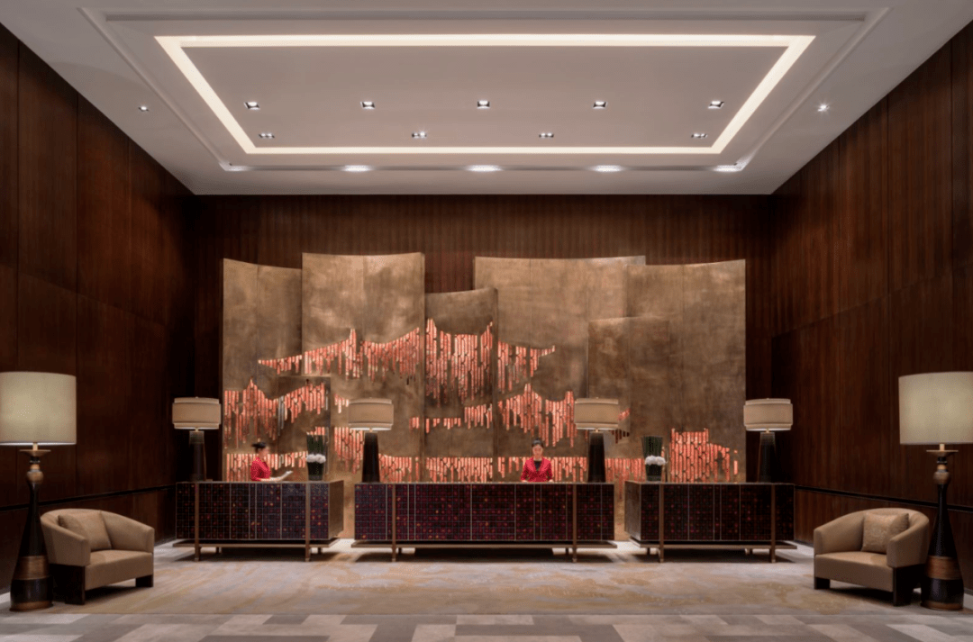 酒店空间的处理上延续了古城墙雄浑宏伟的神韵,整体色调以古铜色为主,取材盛唐时期的建筑样式,让宾客置身酒店期间,仿佛穿越千年,梦回盛唐。