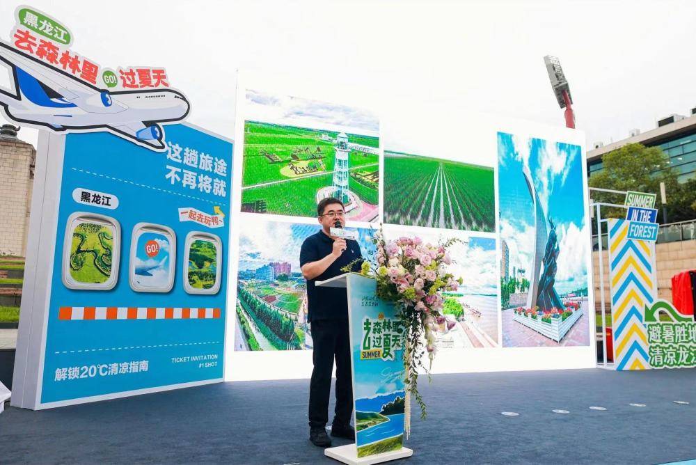 当“清凉龙江”与“夏日申城”相遇,怡人的风景、特色的表演、地道的美食、精美的手作……为火热的“魔都”吹来一场酷爽的“龙江风”。7月8日-9日,黑龙江(上海)旅游营销推广中心开业仪式暨黑龙江文化旅游市集活动在上海市创智天地广场精彩举行。黑龙江省文化和旅游厅一级调研员张春艳、携程集团战略合作部总经理宋利国、黑龙江省各地市文旅部门相关负责人、上海市旅游企业及新闻媒体代表、旅游达人及上海市民等200余人参加活动。市文旅集团、市非遗中心代表佳木斯市参加活动。