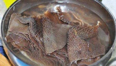 2、将锅中倒入清水烧热,倒入毛肚,放入少量食盐捞一下,大概1分钟即可出锅