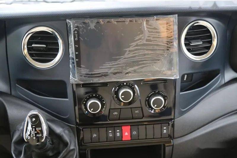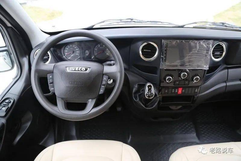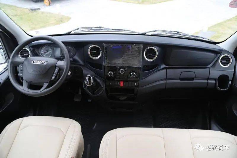进入到驾驶室,依维柯欧胜的布局十分贴近乘用车,这样做最大好处就是,即便是第一次驾驶该车的驾驶员也不需要花费太多的时间去熟悉。依维柯的车标logo、空调的出风口、旋钮控制按键、挡把等部位做了镀铬装饰,在照明效果不佳的路况,也能方便驾驶员定位。前排设有三个座椅,挡把布置在了中控台上,节约出的空间方便前排成员向后移动,参与到后方的娱乐中。车内共有5个座椅,主副驾驶前面都设有安全气囊。