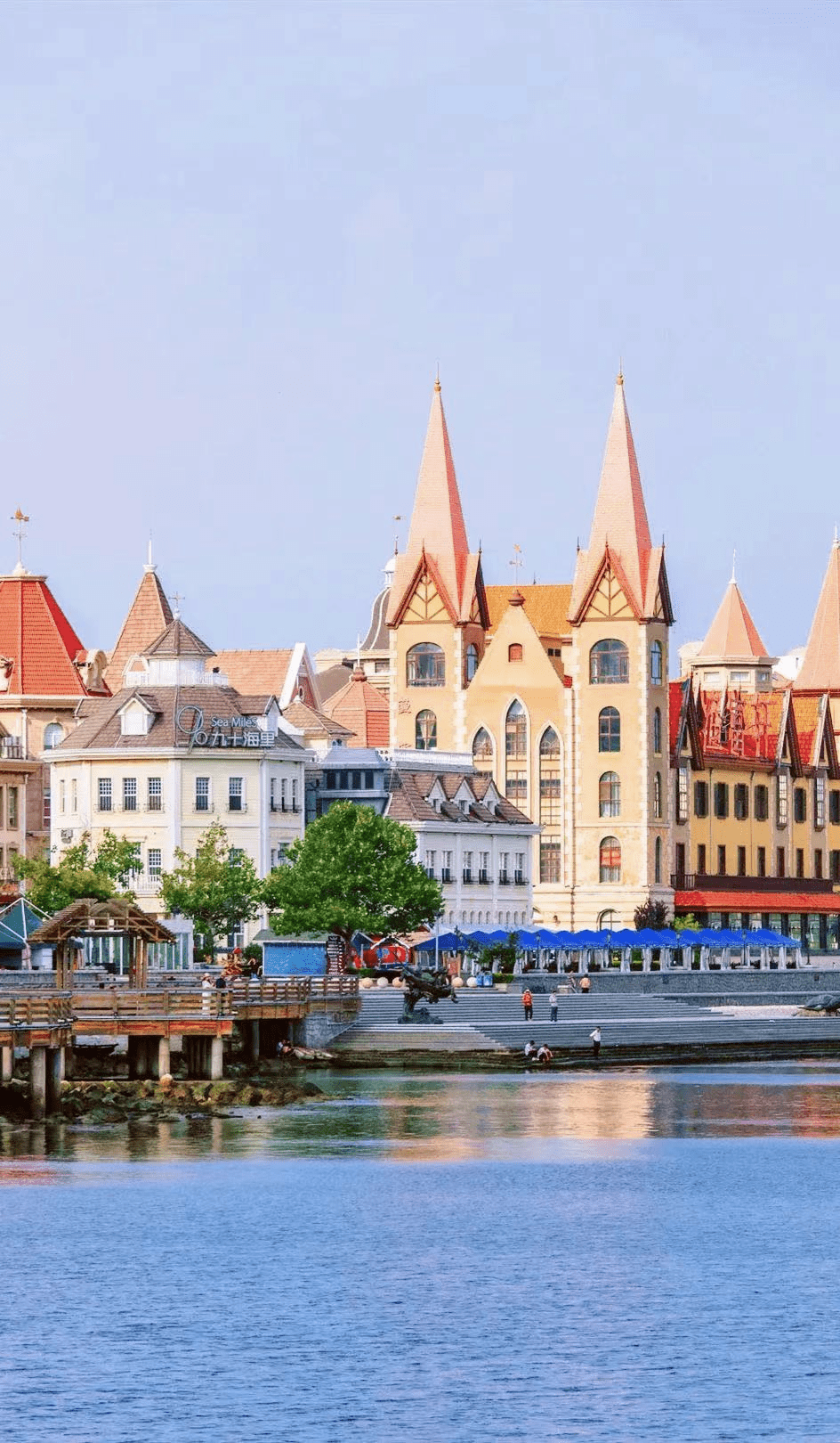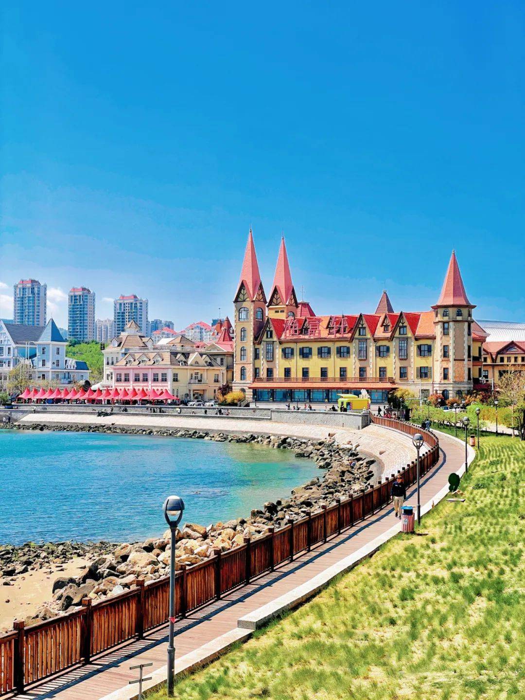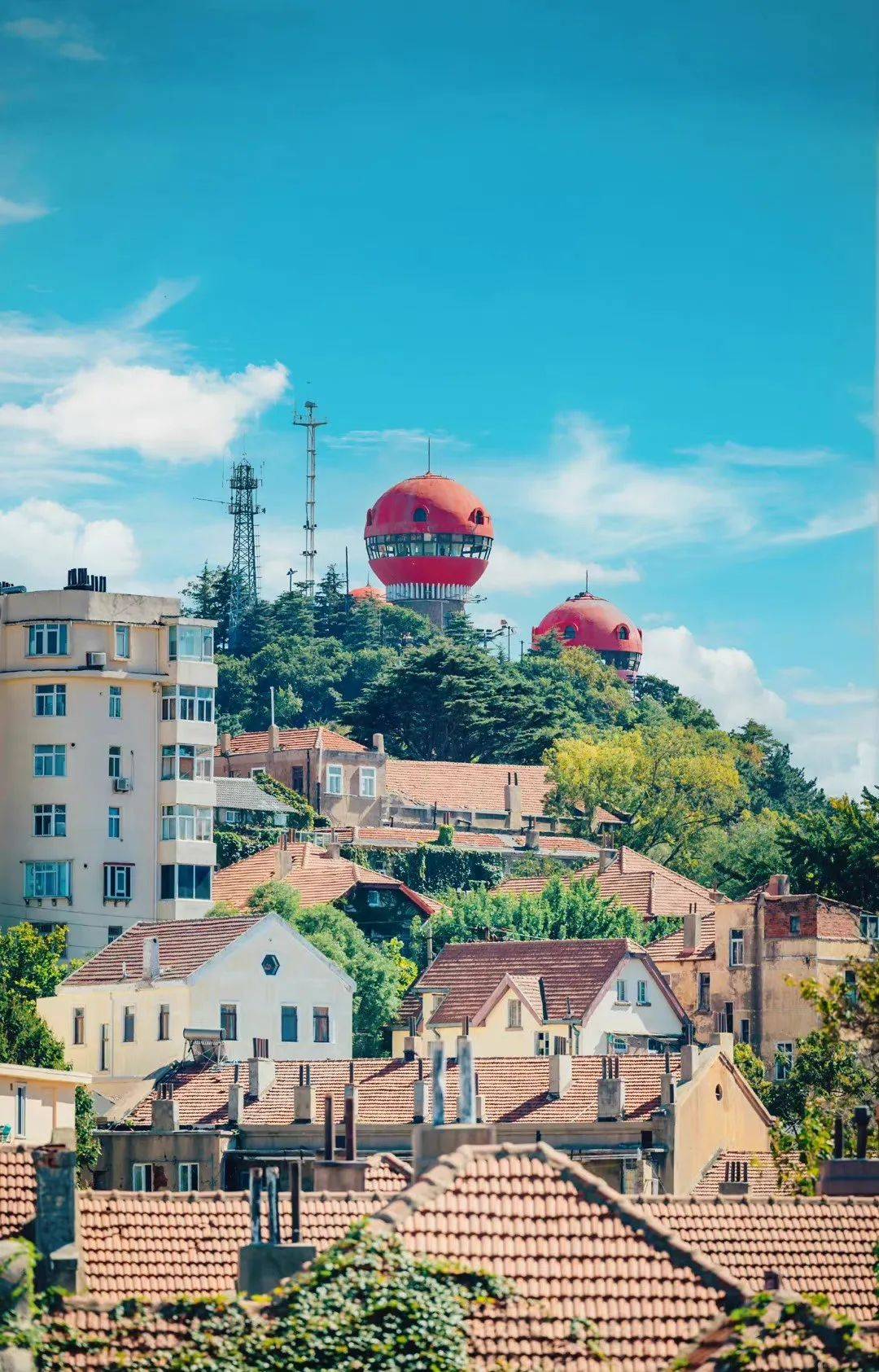 教堂前的新人洋溢着幸福的笑容,八大关的爬山虎爬满城堡的外围,当红色的瓦片铺满蓝色的穹顶之下,这个城市以它最宽广的胸怀拥抱着这个世界。