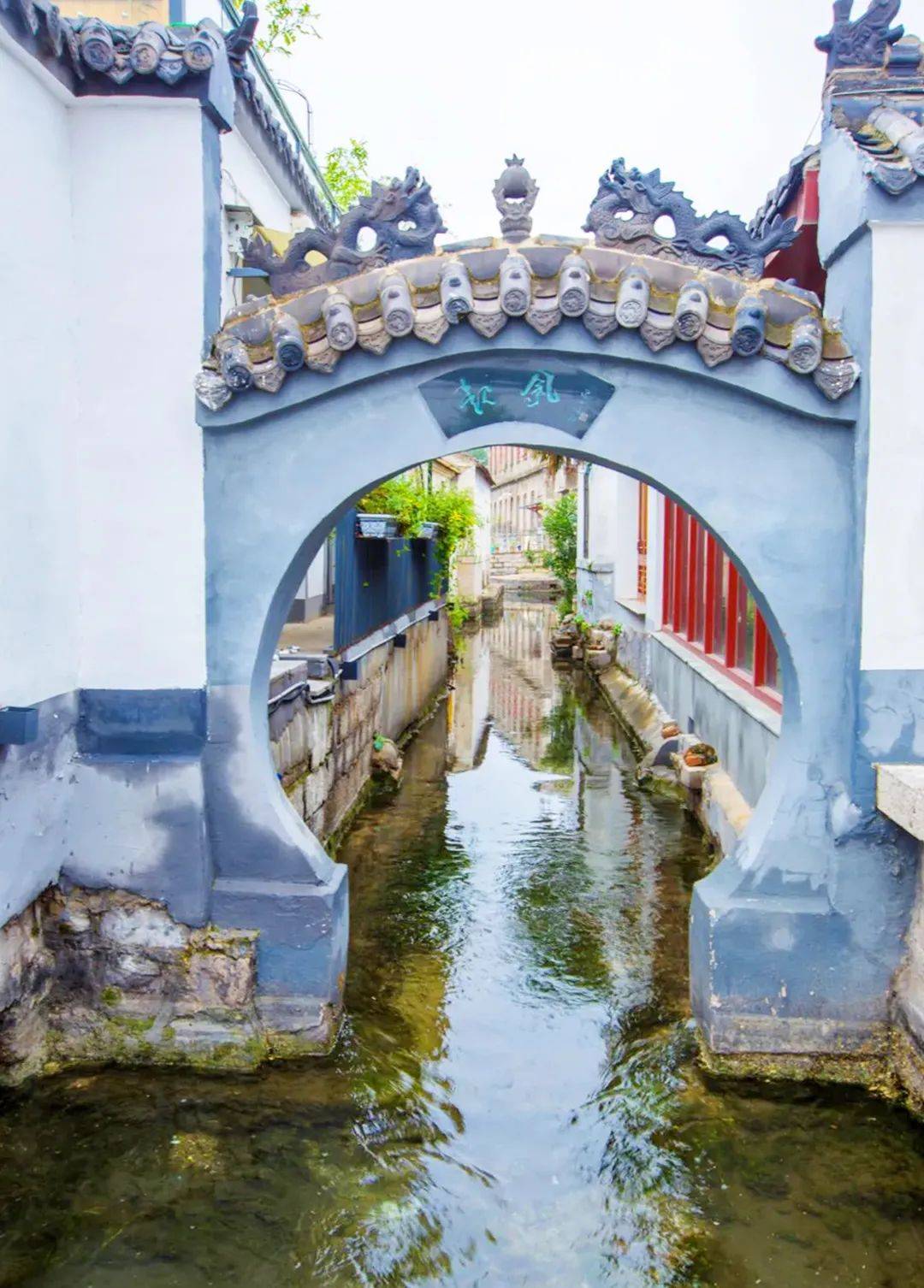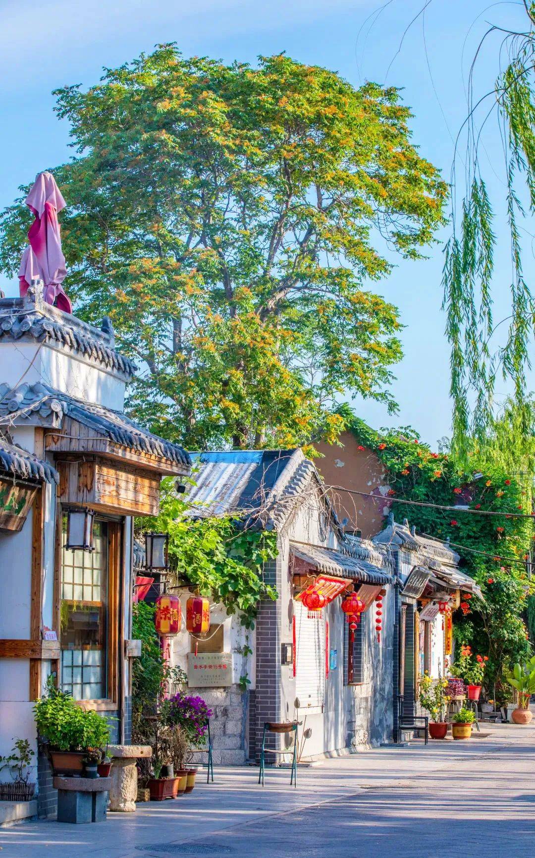 一条清澈见底的碧绿色小河缓缓流淌,青砖黛瓦,四合小院,簇簇绿植在精心栽培下茂密生长。