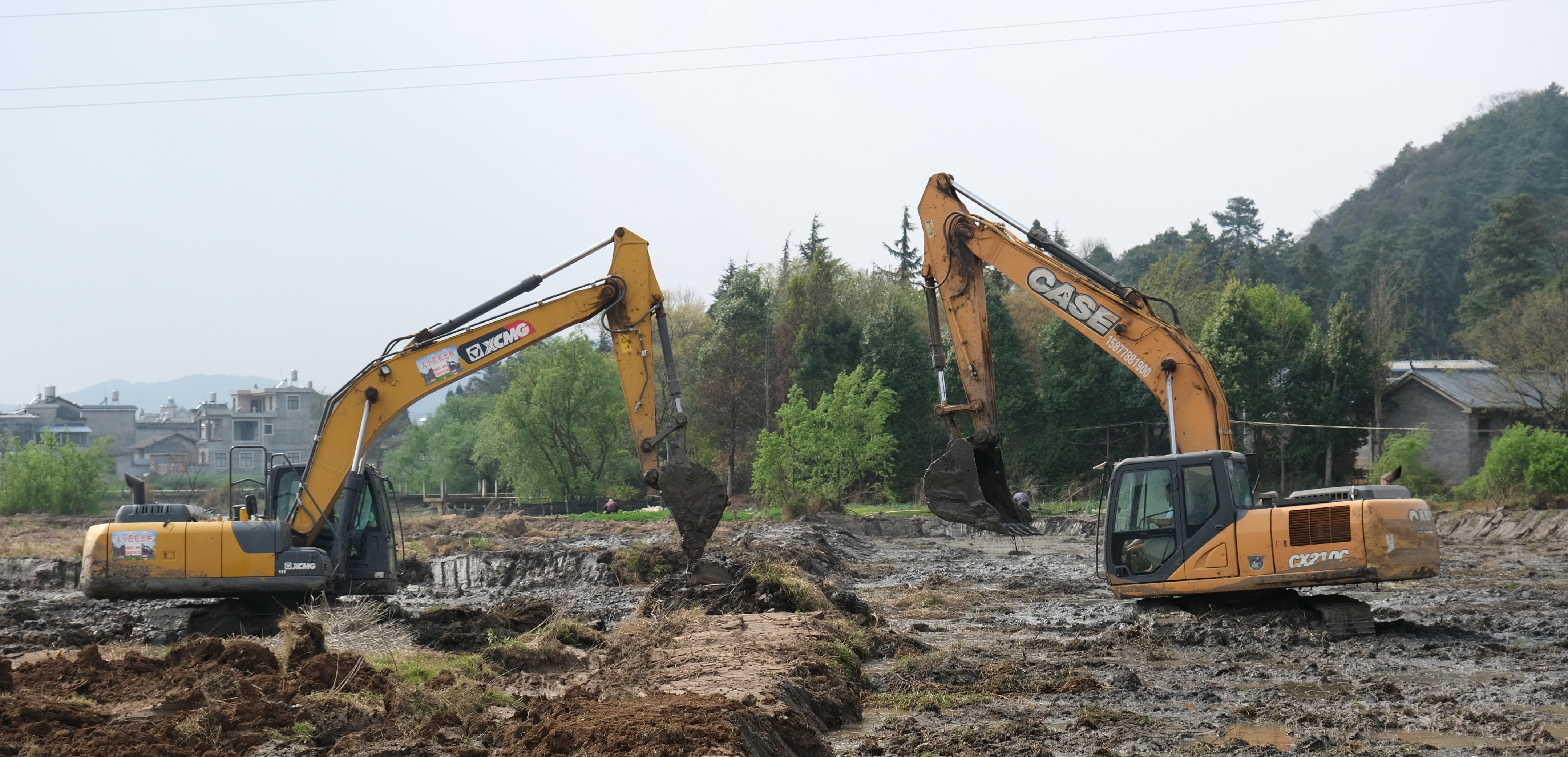 记者来到师宗县丹凤街道海燕社区幸福河左岸,整齐的方形荷塘映入眼帘。不远处,一些挖掘机正在轰鸣忙碌,马不停蹄地挥舞着铁臂,紧锣密鼓地进行着田地的合并、平整、改造工作,场面热火朝天。