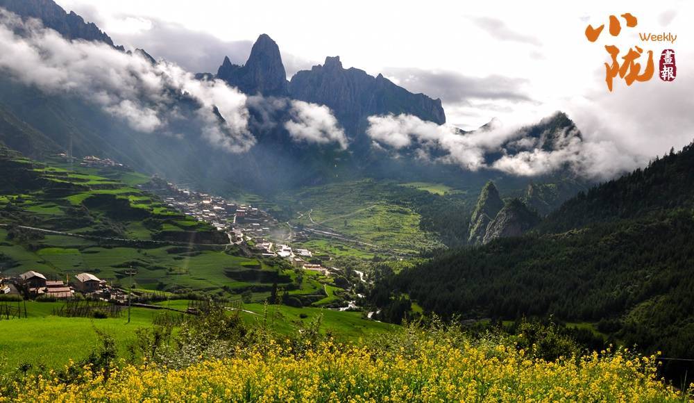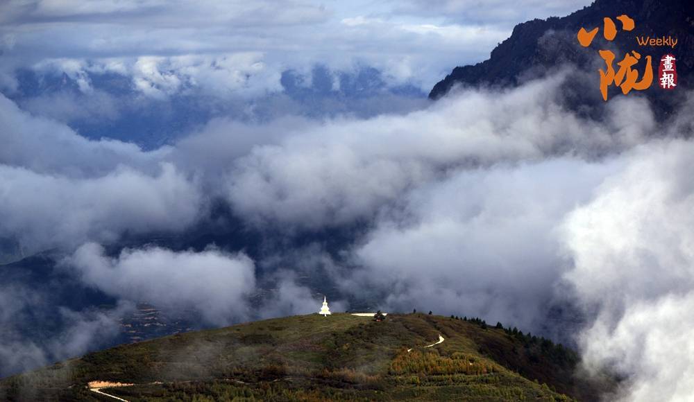 圣洁白塔在云雾中坚立,仿佛处于仙界。山脚下,是原生态的藏寨,淳朴和善的村民日出而作,日入而息……