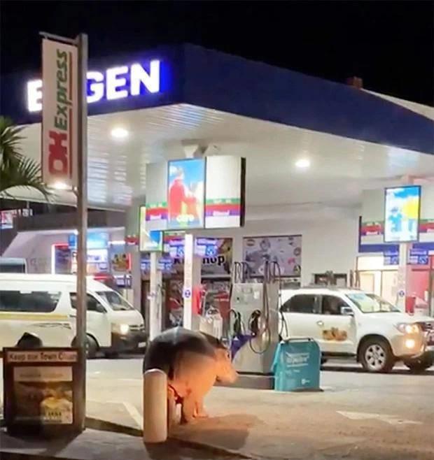 加油站的工作人员提醒客人不要离这只河马太近,也不要用强光照射它的眼睛,万一因此引起河马的攻击性后果不堪设想。