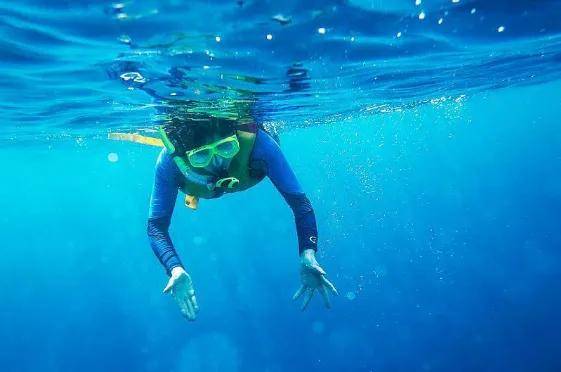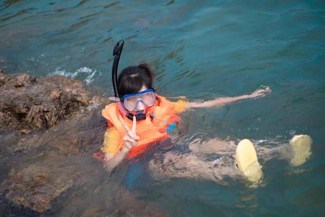 4、浮潜体验60分钟:救生衣+浮潜镜+呼吸管(人数不多不限时间)。