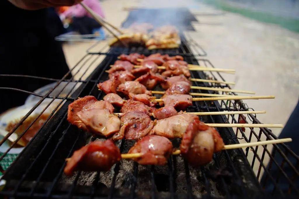 十个人为一个小组,然后大家分工洗菜,串菜,烧烤。