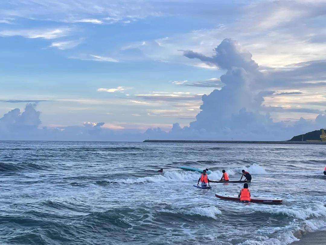 15:00 扎营结束,领取救生衣和冲浪板然后就可以去【海上冲浪】或者去【划浆板】,2-3人一块板有轮着玩(也会发放赶海小工具给到大家在沙滩上赶海)。