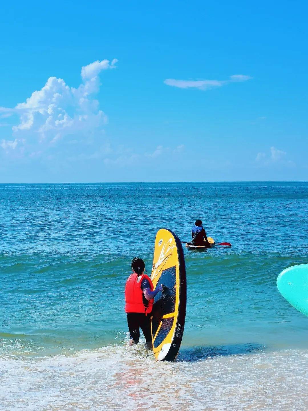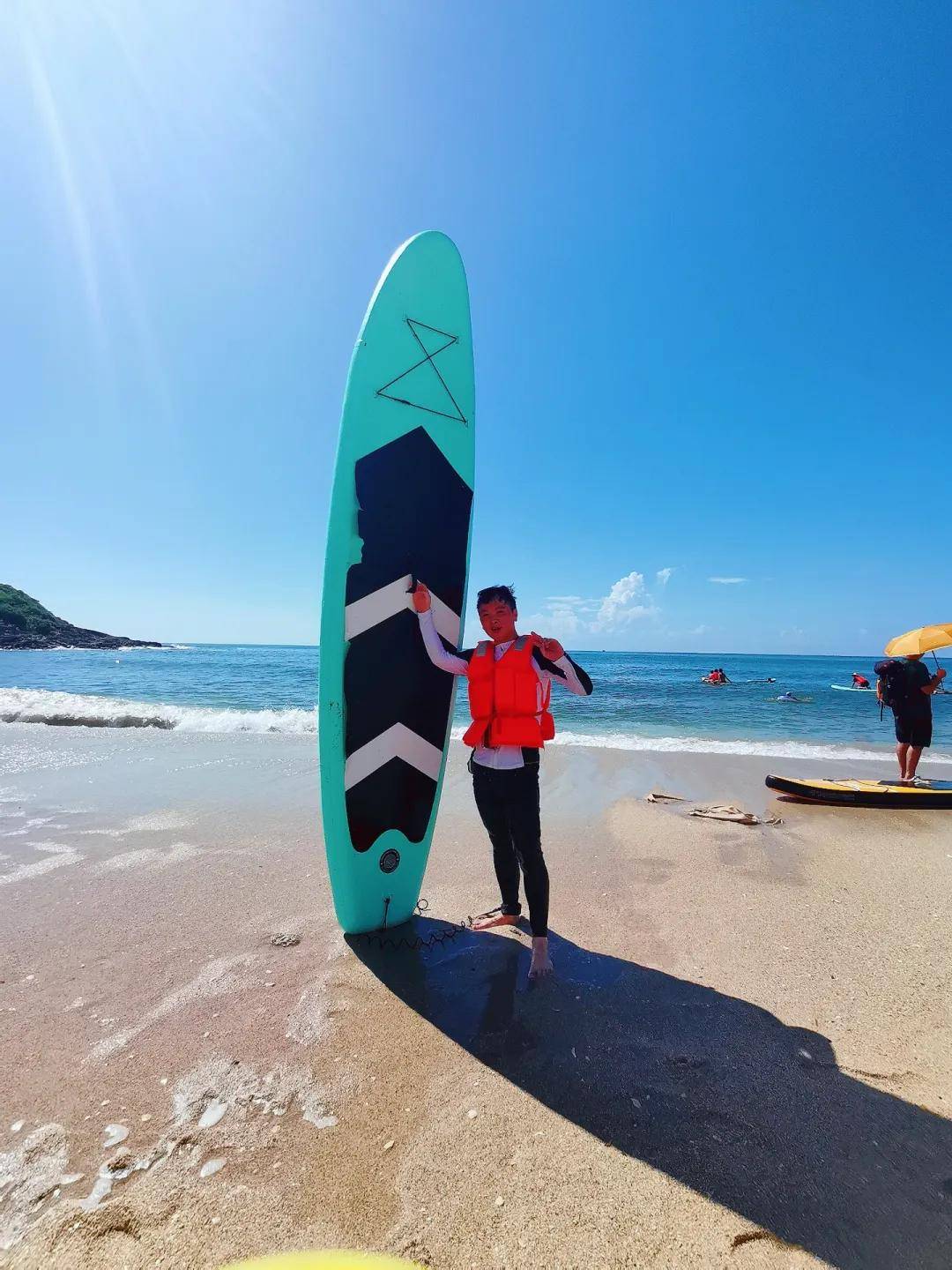 2、赠送海上冲浪游玩60分钟,冲浪硬板/冲浪SUP板+救生衣(数量有限,轮流玩,人数不多不限时间)
