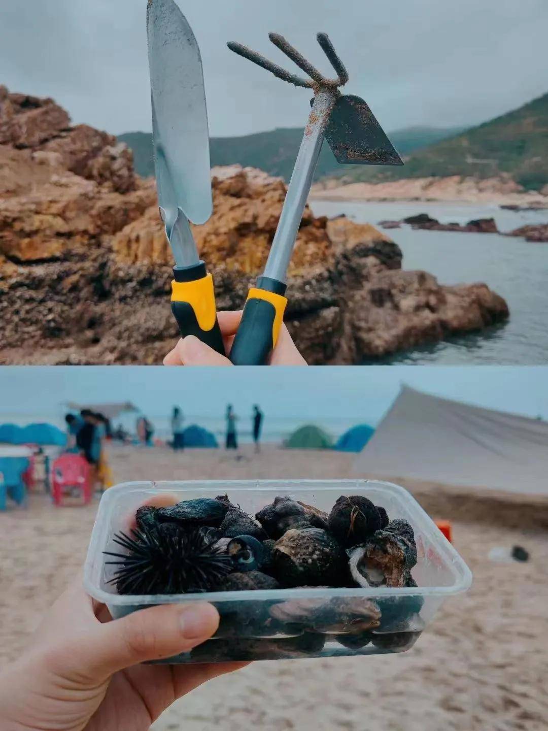 海边有很多的贝壳,海胆和螃蟹,这些海鲜都是可以捡来直接吃的,晚上烧烤就可以安排加餐了,然后在营地一边听海一边烧烤,感觉很棒。