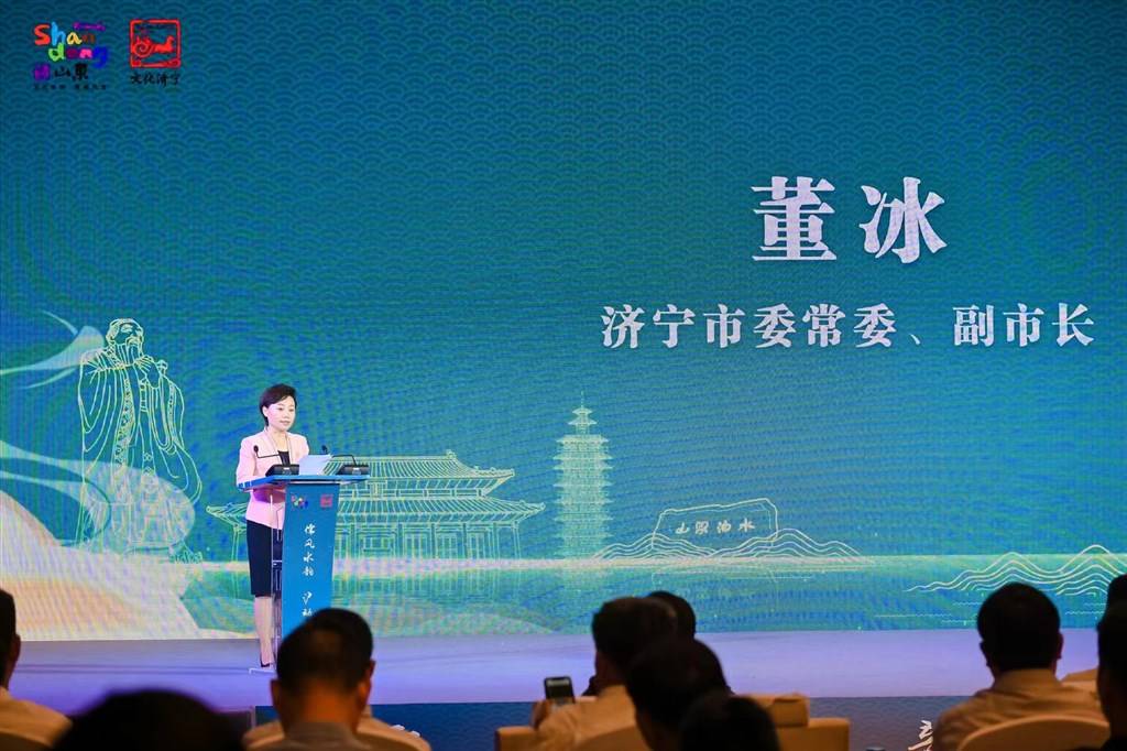 济宁市文化旅游资源丰富,素有“孔孟之乡、运河之都、文化济宁”的美誉。济宁市委常委、副市长董冰在致辞中表示:作为享誉全球的“孔孟之乡”,济宁是儒家文化发源地,以“三孔”和“两孟”为代表的名胜古迹星罗棋布,传载着千年文化浸润的邹鲁遗风。孔子研究院、孔子博物馆、尼山圣境相继建设,成为世界各国文明交流互鉴文化高地。作为历史悠久的“运河之都”,世界文化遗产京杭大运河纵贯全境,京杭运河的开通使济宁成为“水路要冲、舟车云集”之地,这里有运河“水脊”之称的南旺分水枢纽工程、“运河四大古镇”之一的南阳古镇,令人心驰神往、流连忘返。作为久负盛名的“文化济宁”,济宁历史悠久、文化灿烂,现存汉碑汉画像石700多块,曲阜、邹城是国家历史文化名城,兖州是古九州之一,水泊梁山是水浒故事发源地,孟母三迁、断机教子的故事千古传唱。