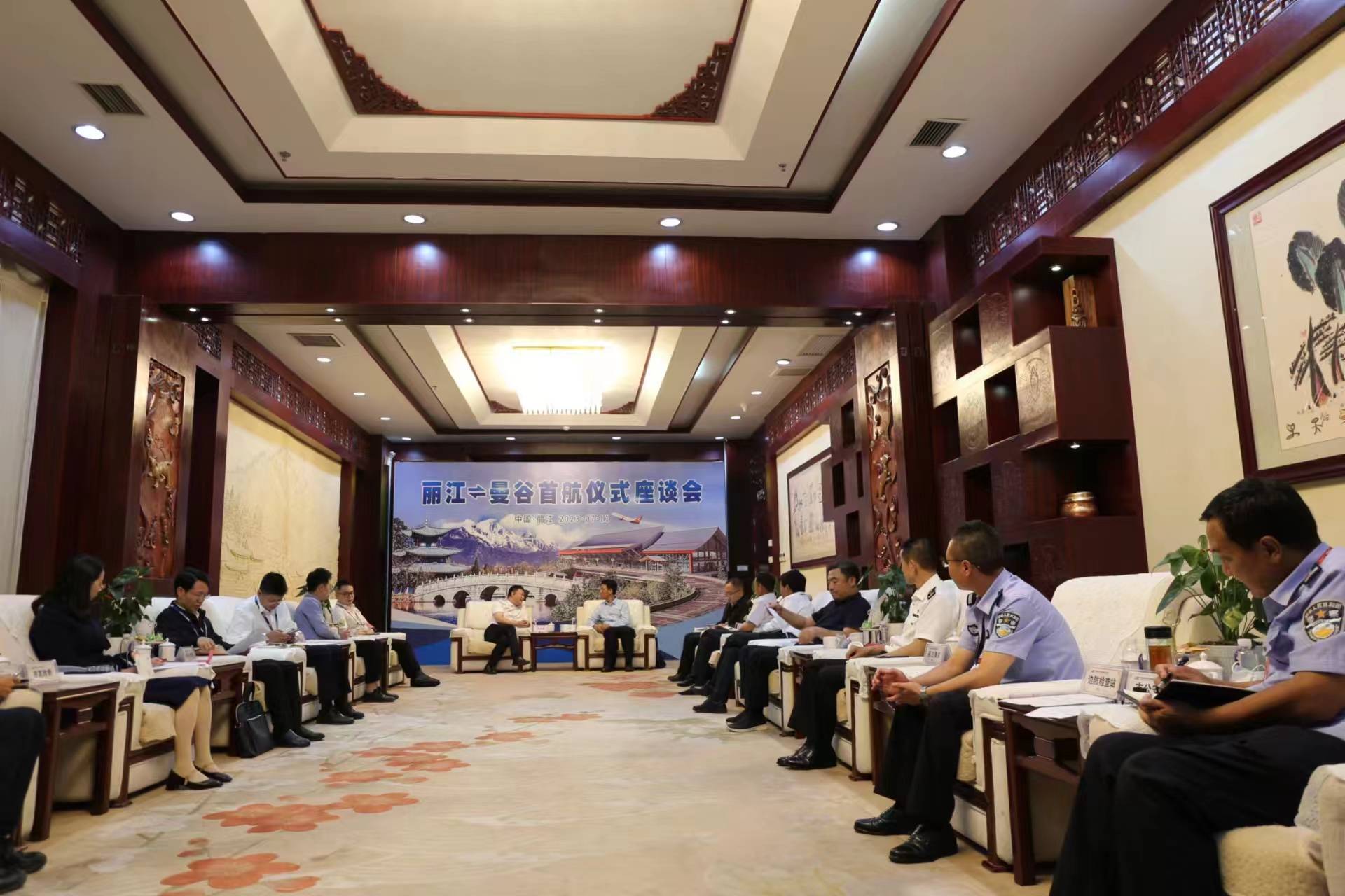 当天,“丽江—曼谷”首航仪式系列活动在丽江机场举行,丽江市市委常委、常务副市长徐贤,丽江市交通运输局副局长、市地方民航发展局局长汤国亮,丽江市发改委,丽江市财政局,丽江市文旅局,丽江市外事办,丽江市商务局,苏南瑞丽航空等嘉宾出席仪式并开展座谈。