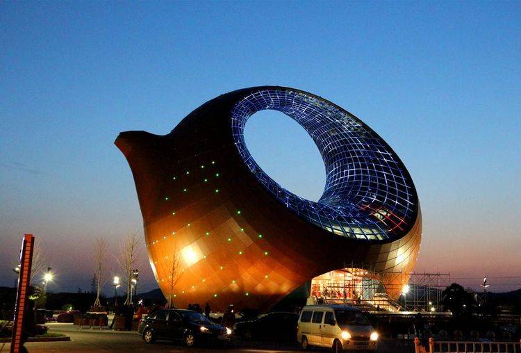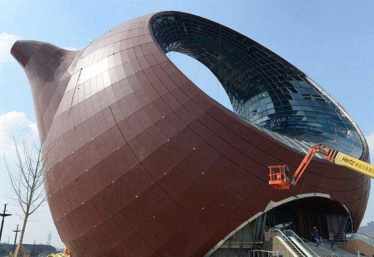 不过根据设计师的讲述,其实在最开始对这栋建筑进行构造的时候,还是参考了我国美术大师汪寅仙的神鸟出林壶。但是对于不少从外地慕名而来参观游玩的游客来说,就完全看不出这其中所蕴藏的美感了。