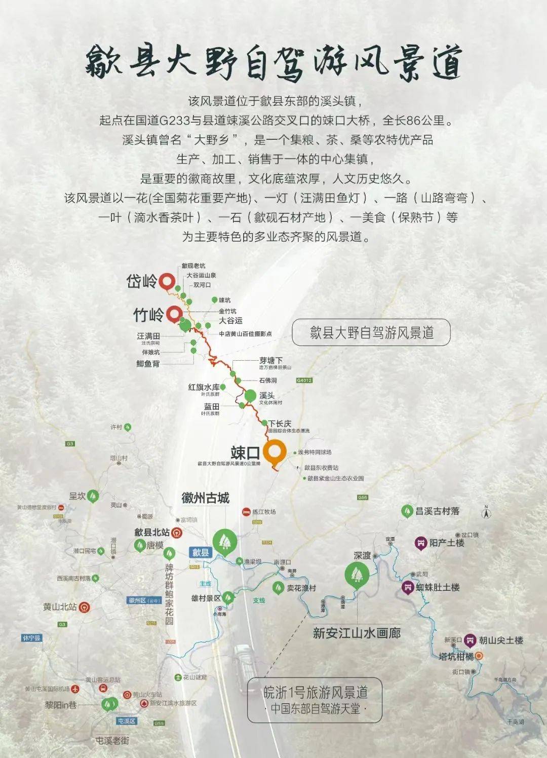 包含景点:大谷运、鲫鱼背、汪满田、竹岭、岱岭