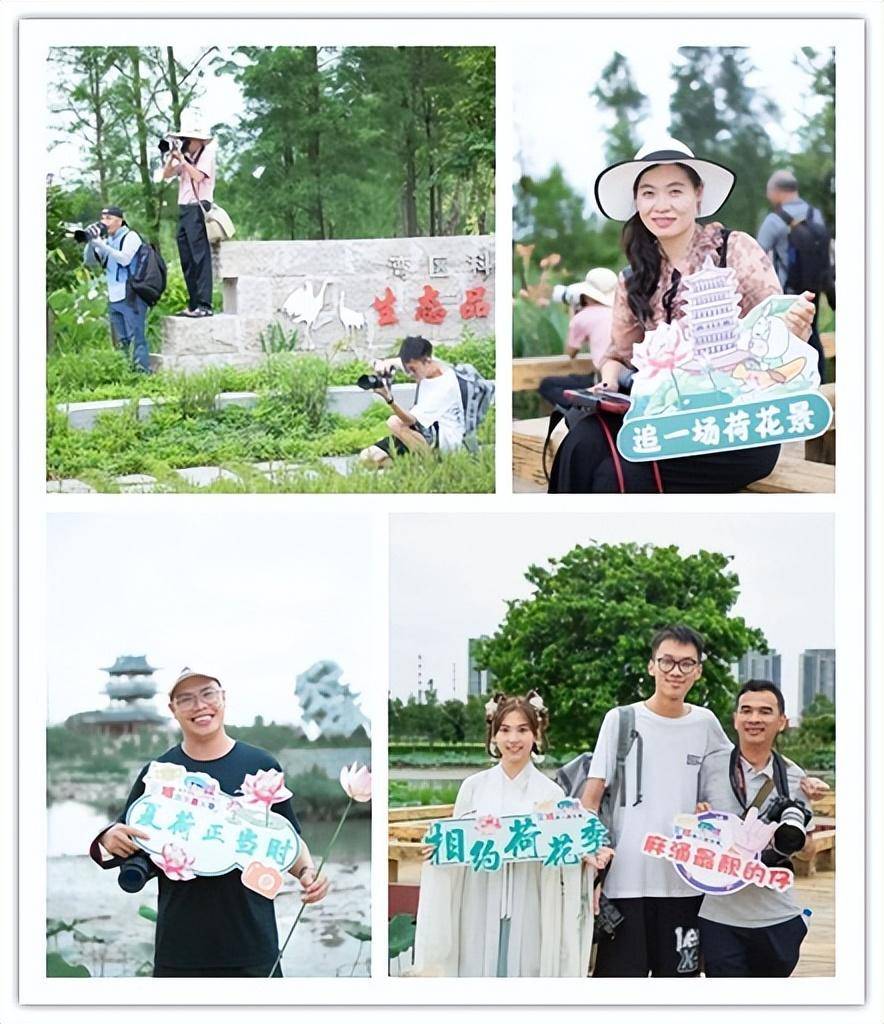美景配美人,氛围感满满,瞬间激发了摄影师的创作灵感,从不同角度全方位纪录下了每一处美景,用相机定格下最美的画面。除了欣赏娇艳欲滴的荷花,大家还一起去打卡了华阳塔、腾龙阁等。将华阳湖的美景尽收眼底,也用手中的相机记录下这美好时刻,各位摄影爱好者们,快和龙宝一起来麻涌寻觅吧~