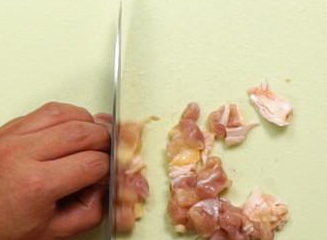 做宫保鸡丁我们首先把所需要的配菜准备好,所需要的食材分别为:蒜苗适量、鸡胸脯肉300克、花生米50克、生抽5克、料酒10克、精盐3克、白糖适量、水豆粉15克、干辣椒25克、姜末适量、醋适量、葱白15克。